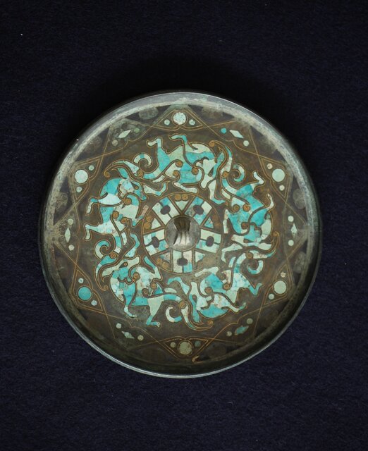 倣 戦国 青銅器 トルコ石金銀象嵌 銅錯金松石珍獣紋古鏡/銅鏡 M328