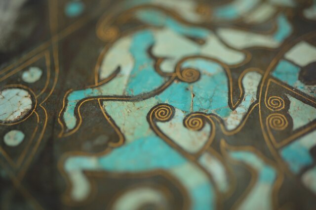 松石トルコ石での珍獣象嵌もとても丁寧