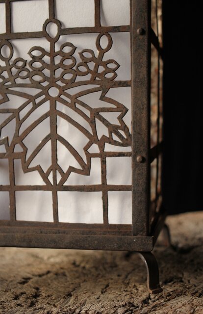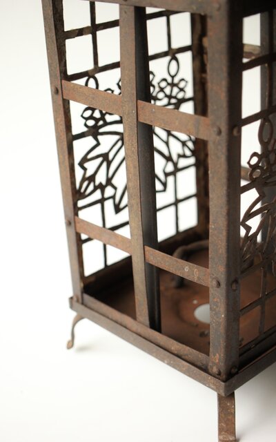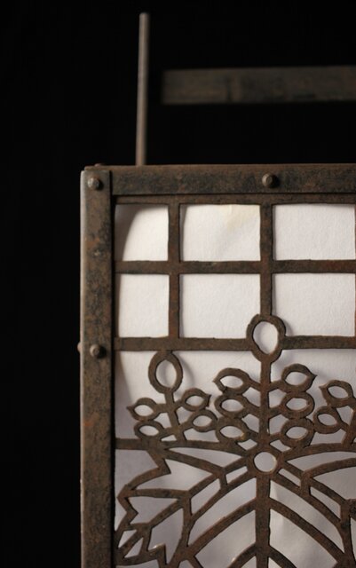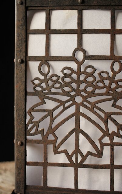 時代の鉄行灯 2面に桐の葉デザインを丁寧に施してあります