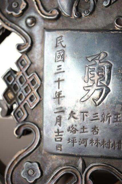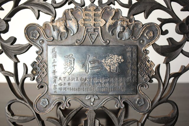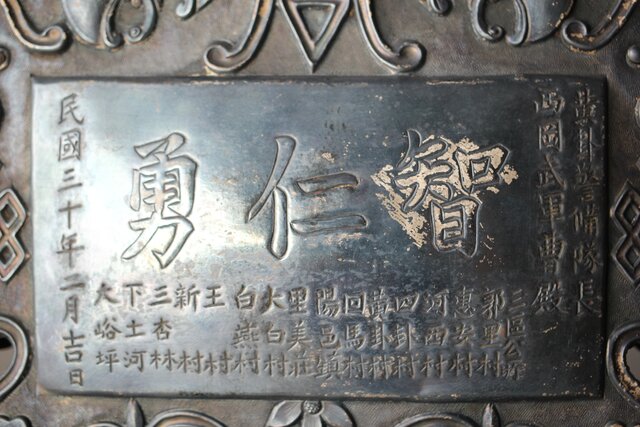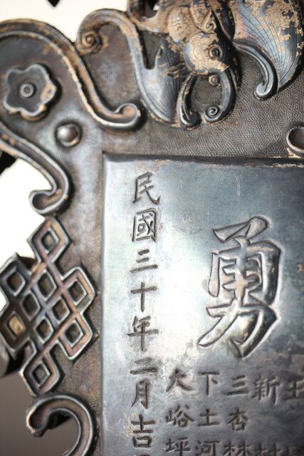 民国/民國三十年 [智仁友] 記念品 黄卦警備隊長 軍曹 太原徳華足銀公 盾 掛牌 勲章 M407