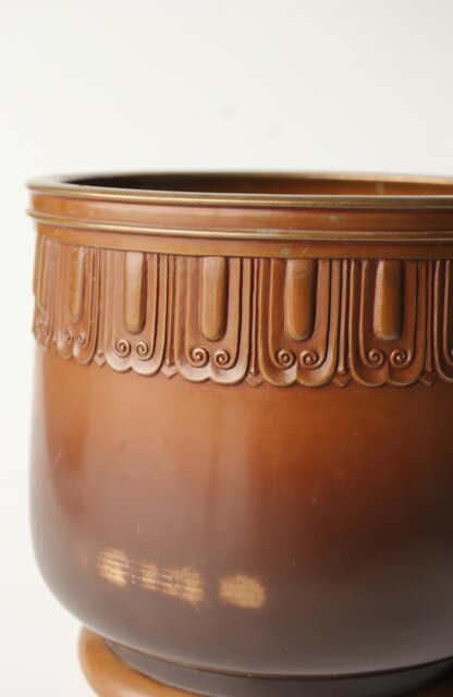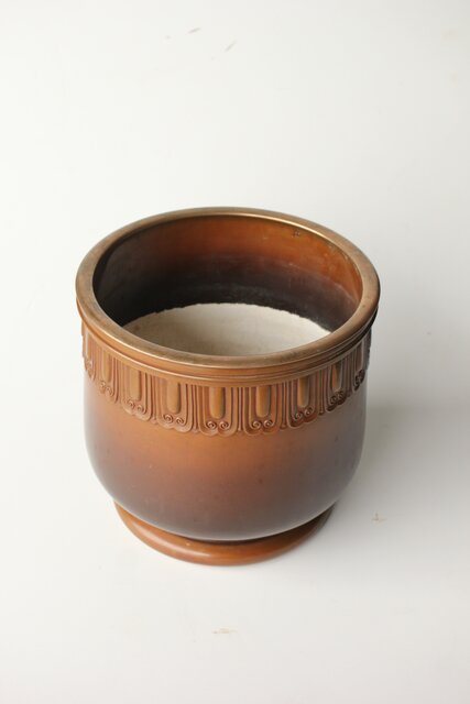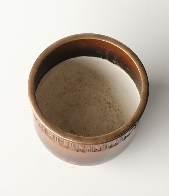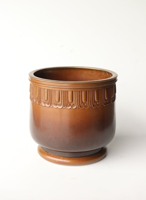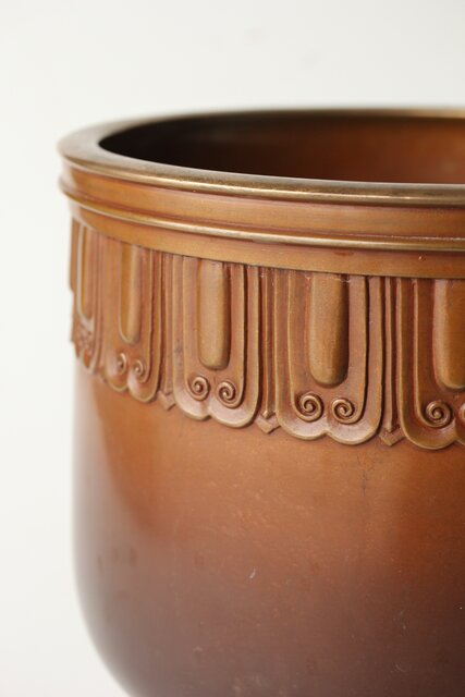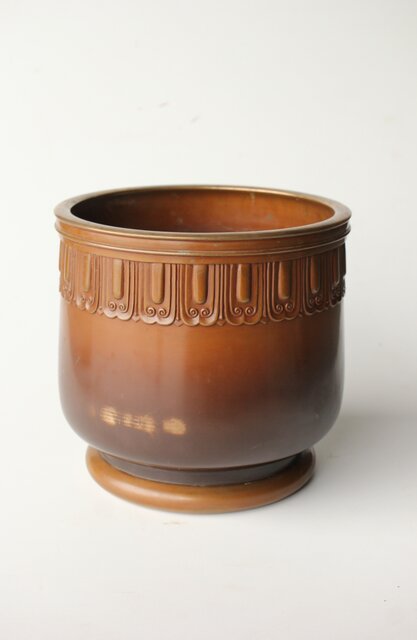 菊光堂 鍋寵造 宣徳銅 蓮花彫 火鉢 瓶掛 M446