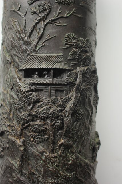 池田逸堂 山水鋳造銅 大花瓶 M464