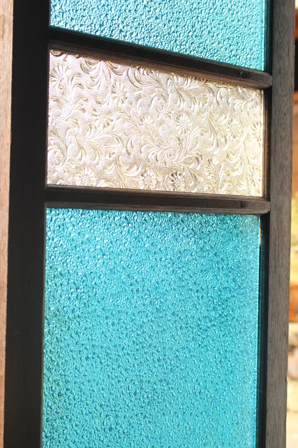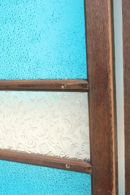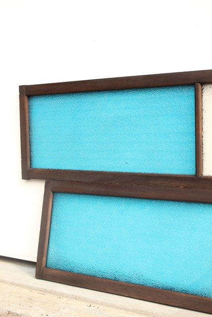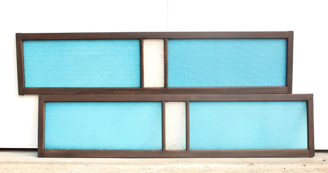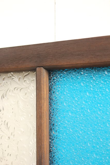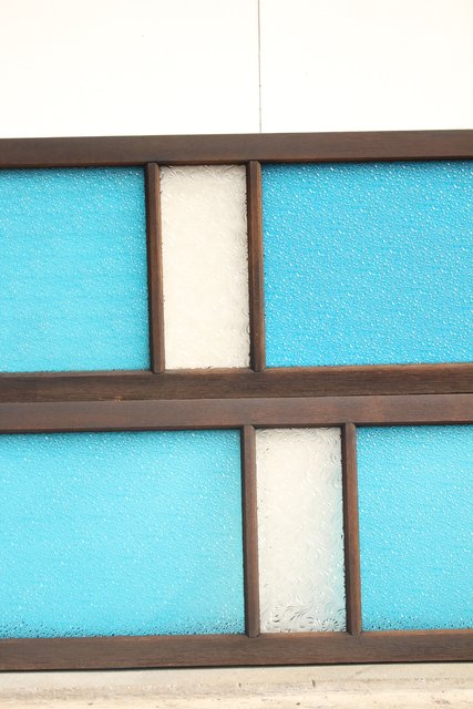 稀少 大判ダイア水色ガラスの明り取り/欄間 2枚1組 R2304