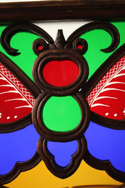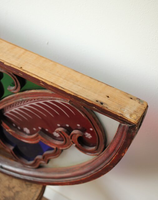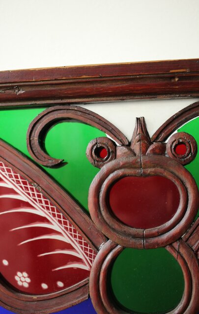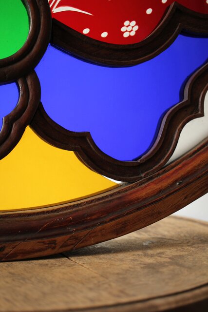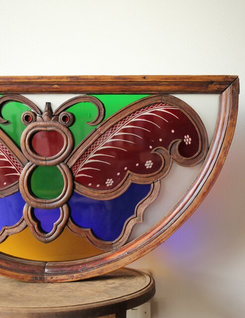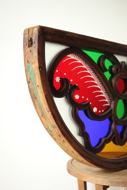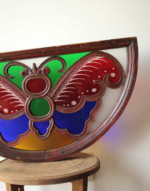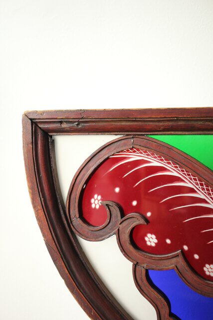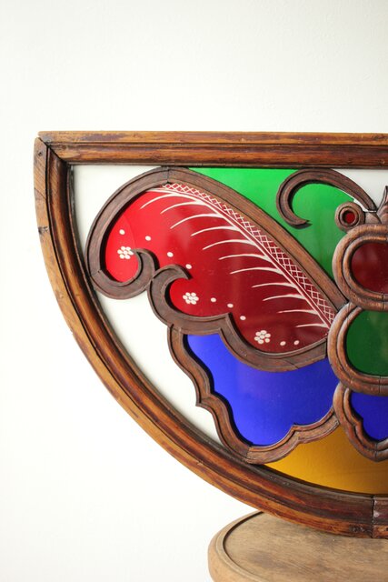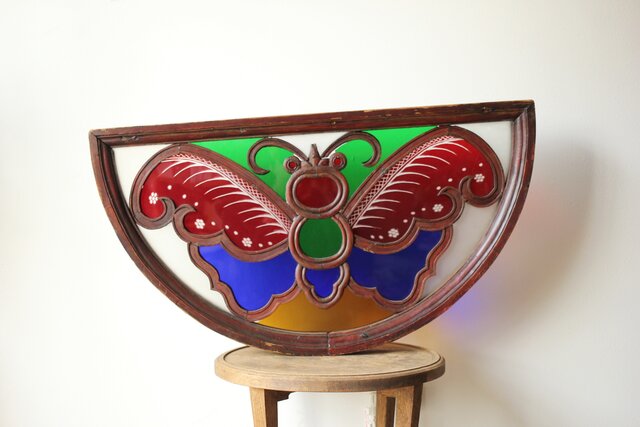養蚕 多種と切子色ガラスのステンドグラス明り取り Y050