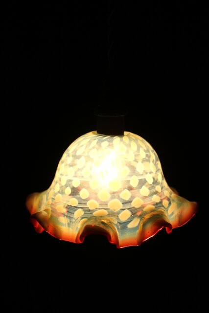 フリル赤水玉文電笠 A483 ネジが付いているので穴の上下から挟んで固定します E17 LEDをご利用ください