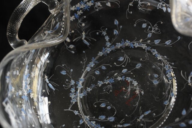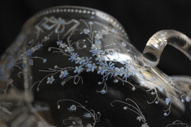 すっきりとしたガラスに青と白の品のある彩色を施しています