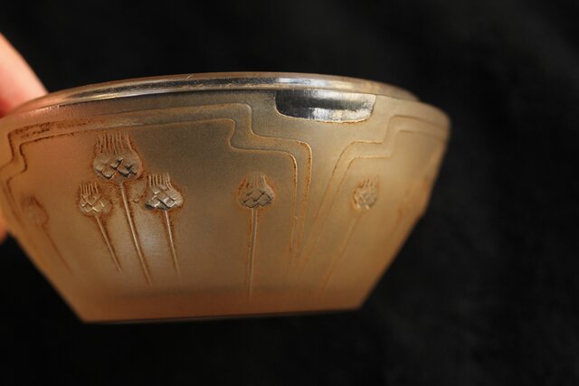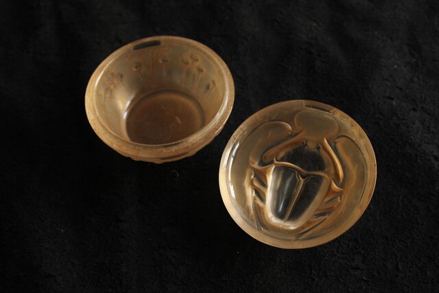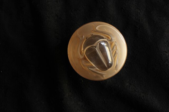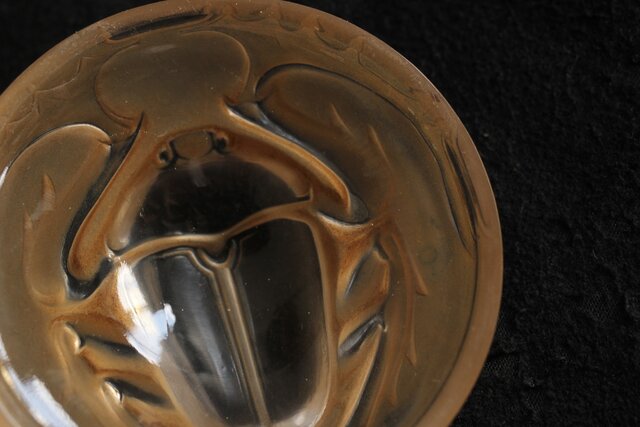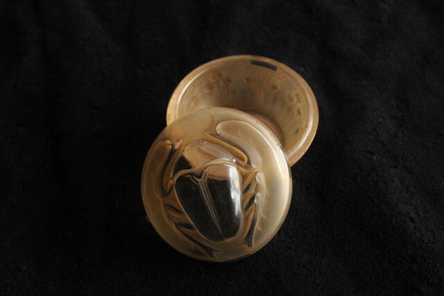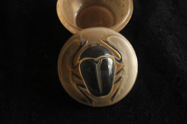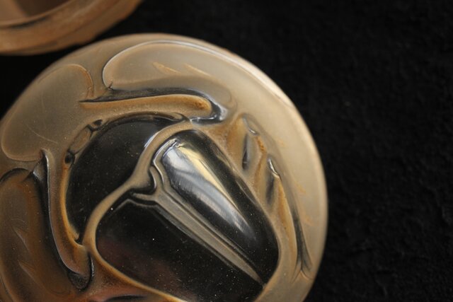 スカラベをモチーフとした セピアパティネのガラス蓋物