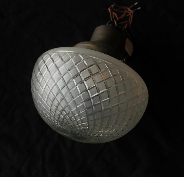 希少な大きな切子のオーバル型照明