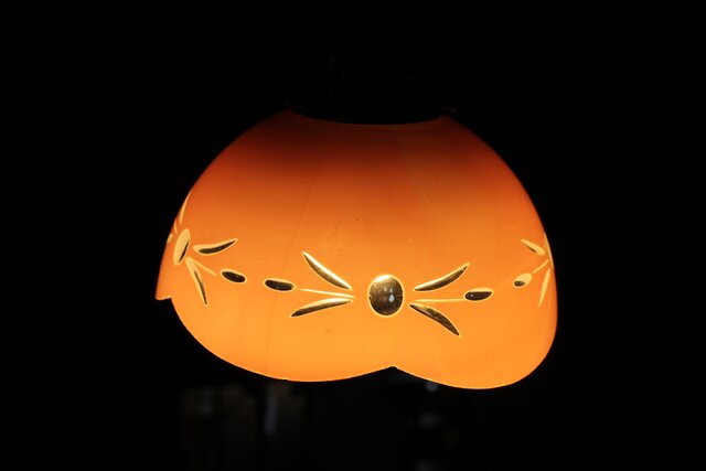 稀品 大正昭和期 金赤 桃色切子電笠 照明 A503