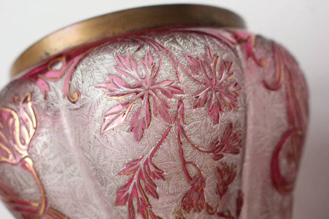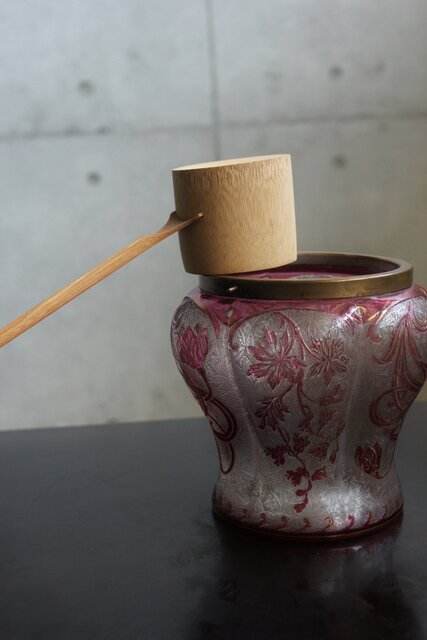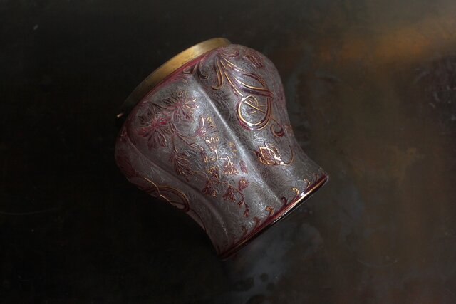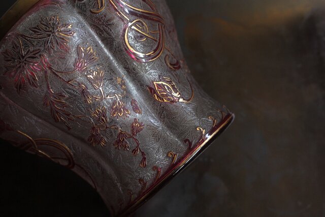 1900年前後に作例が見られる「アシッドエッチング」という酸化腐食技法で表面の模様を作成しています