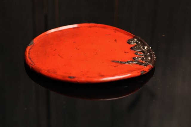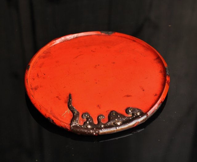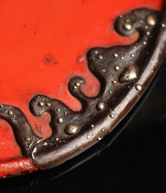 漆盆に鉄の象嵌を施した 変わった意匠