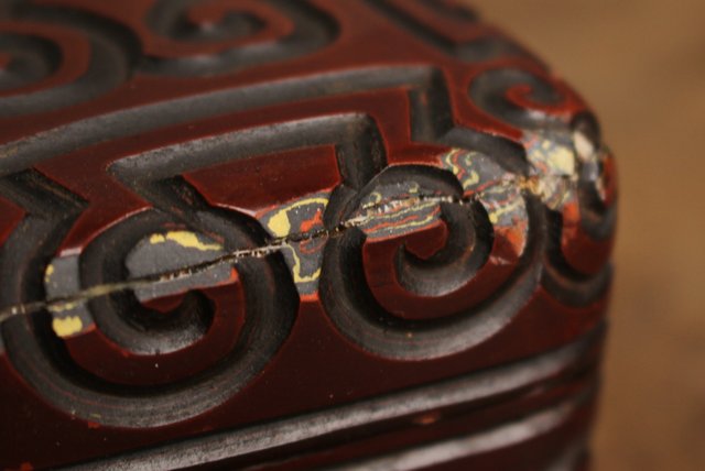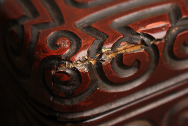 屈輪文彫漆硯箱 S1899 欠けの跡 使用には問題御座いません