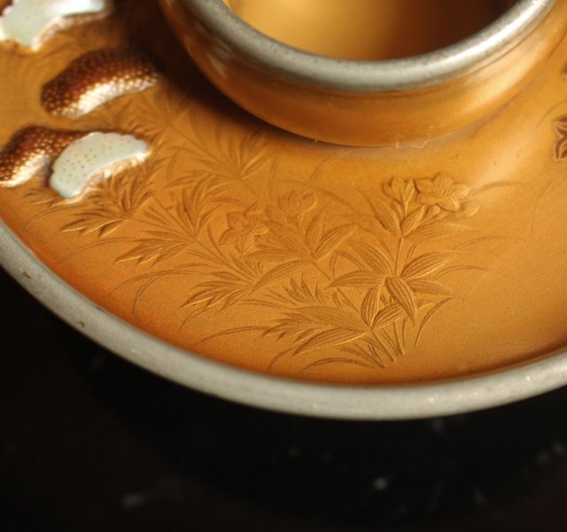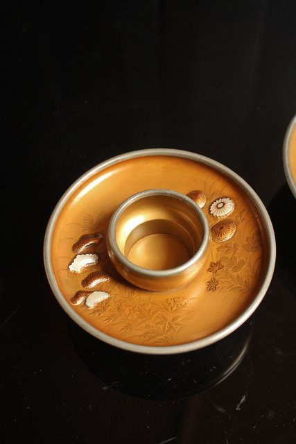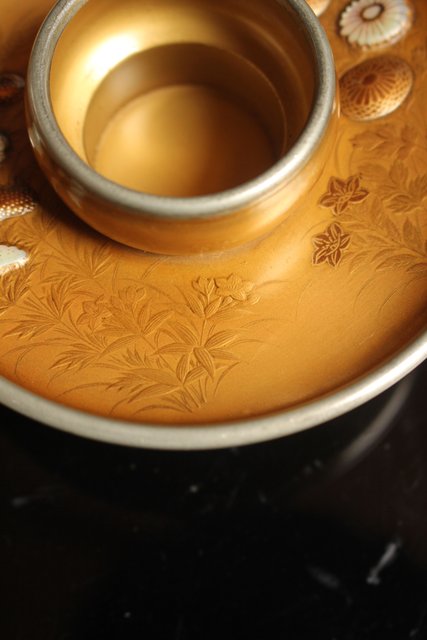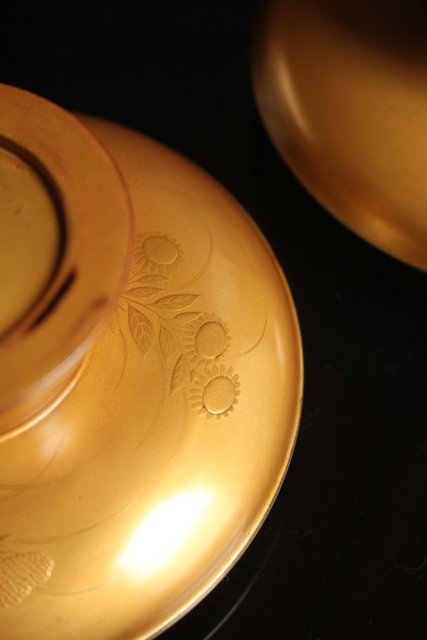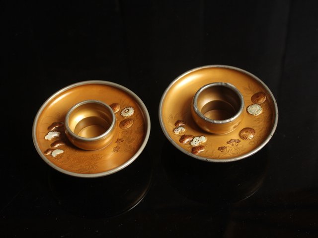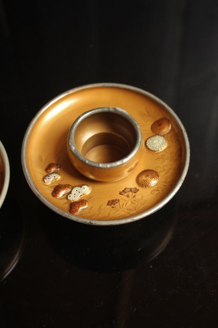 光琳蒔絵風天目台/茶托 2個1組 S2513