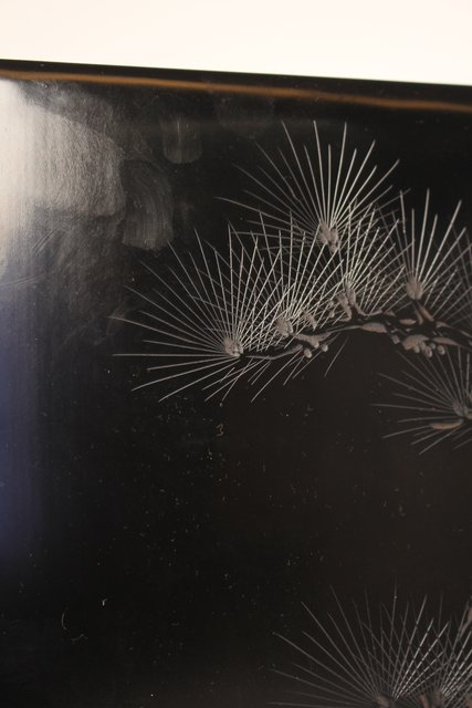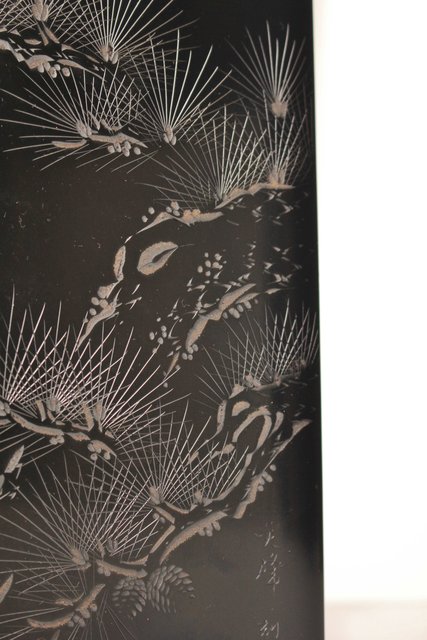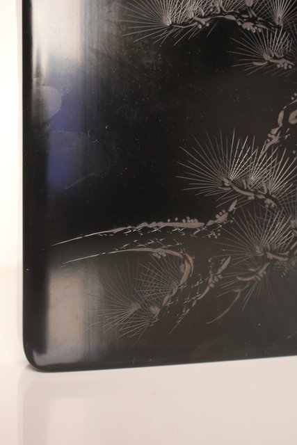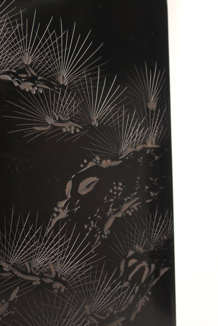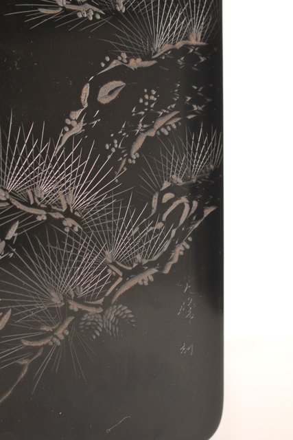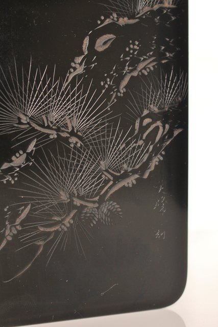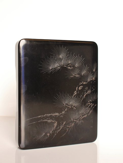 硯箱の表面に彫漆を施した粋な一品