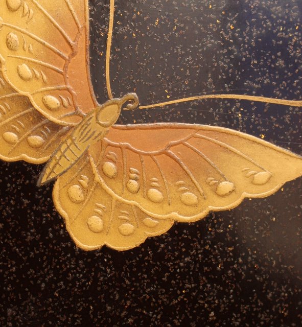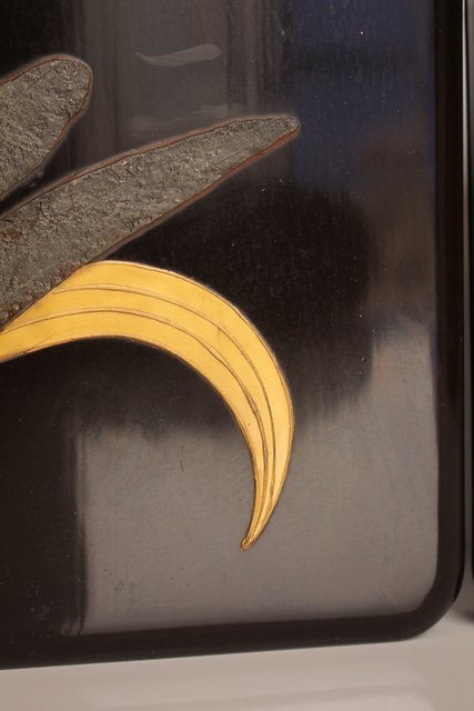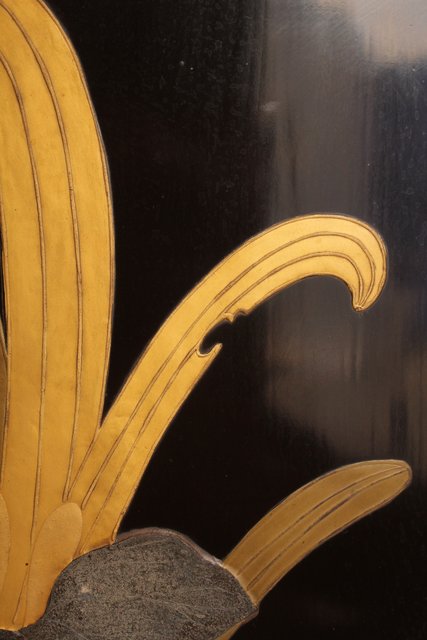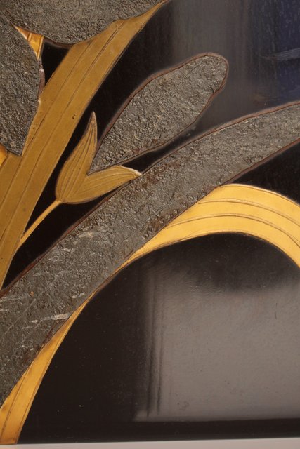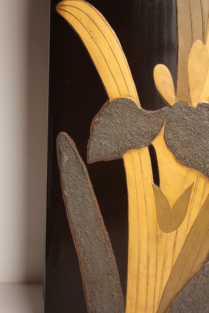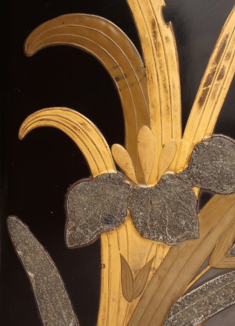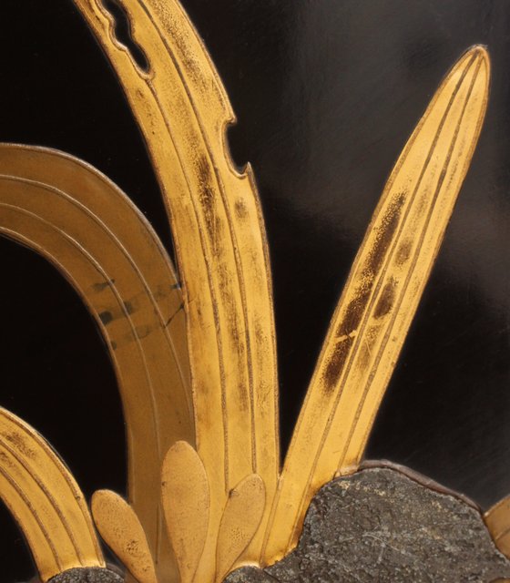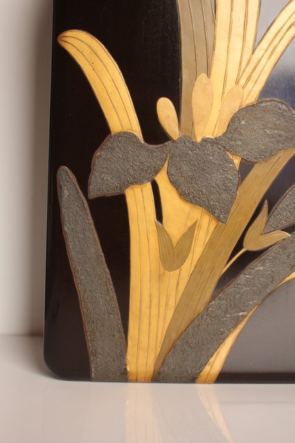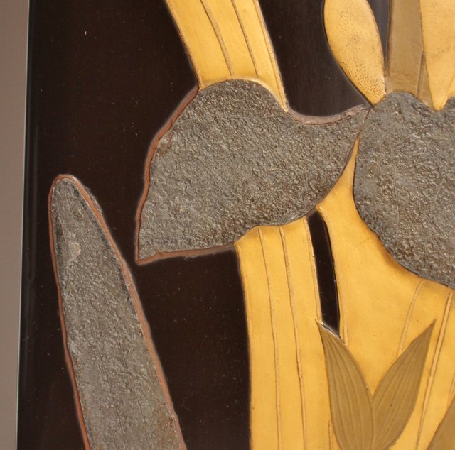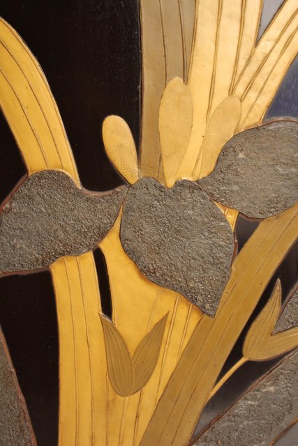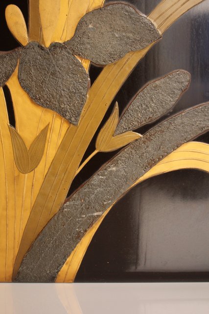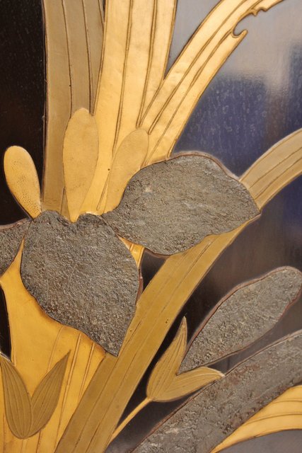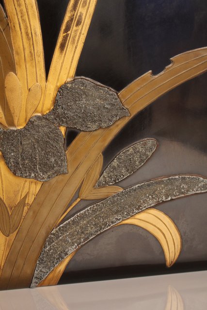 漆の色彩を変え 菖蒲に立体感を感じさせます
