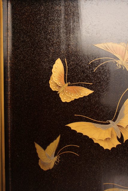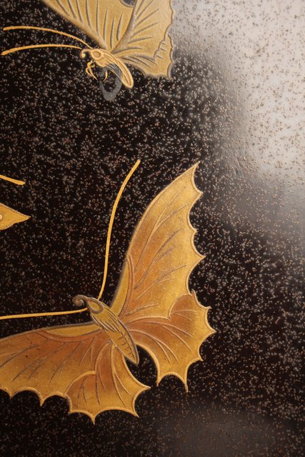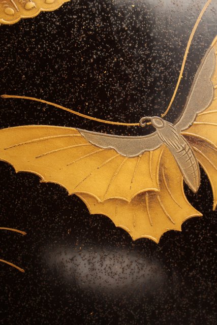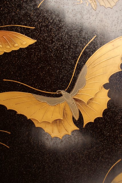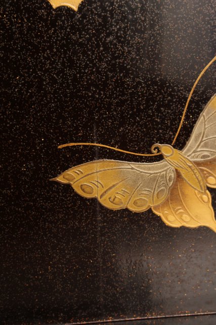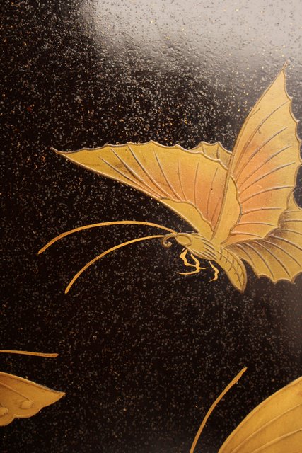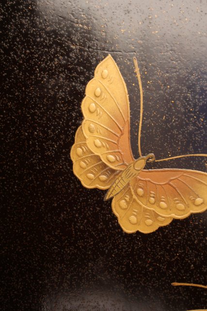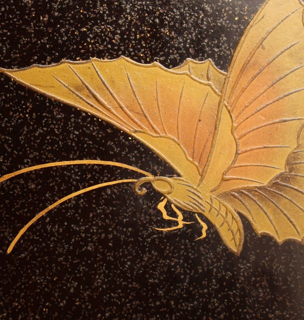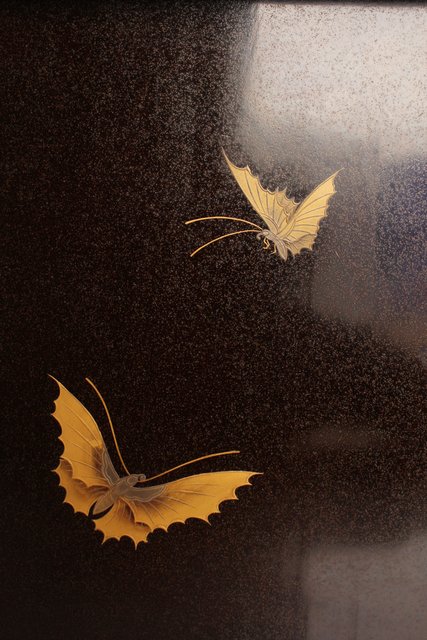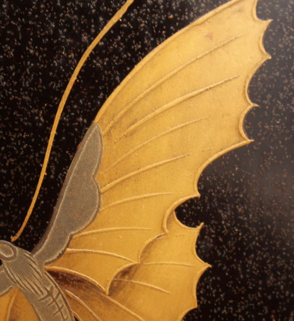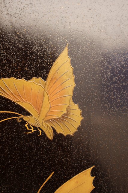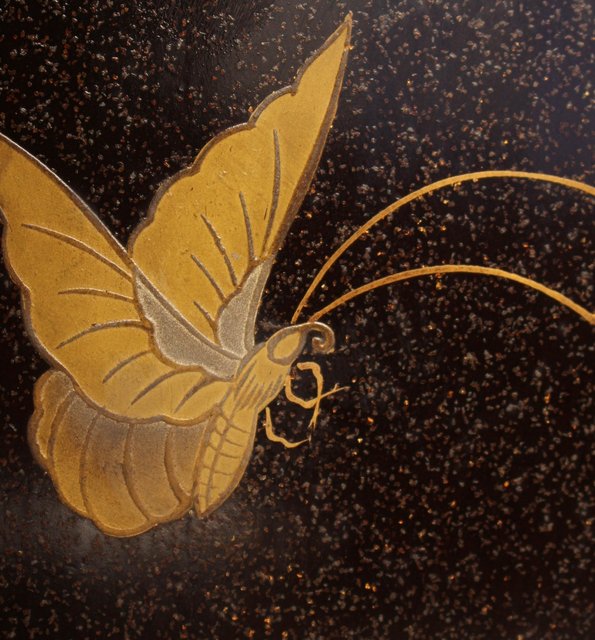 漆の色彩を変え 菖蒲に立体感を感じさせます