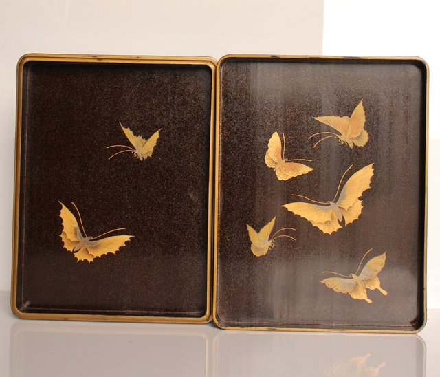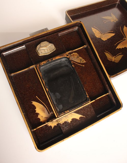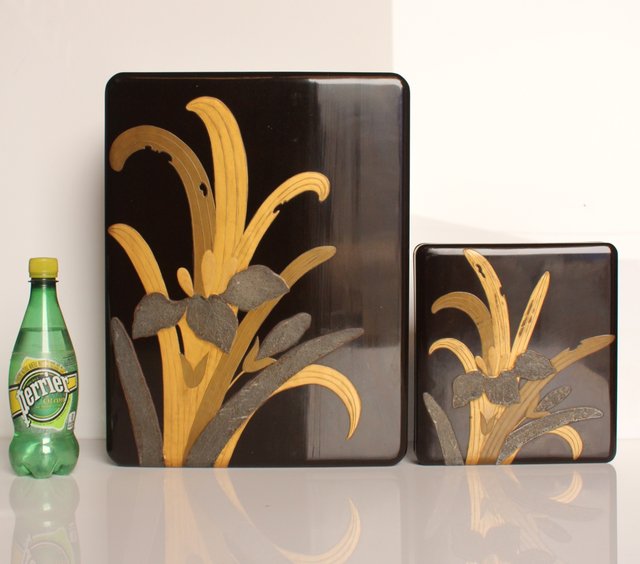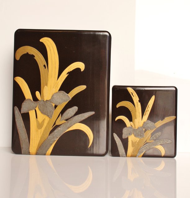 菖蒲蒔絵 硯箱と文箱のセット S2711