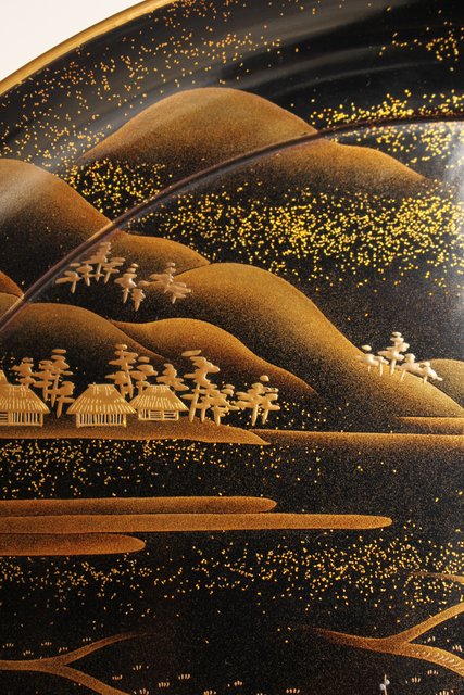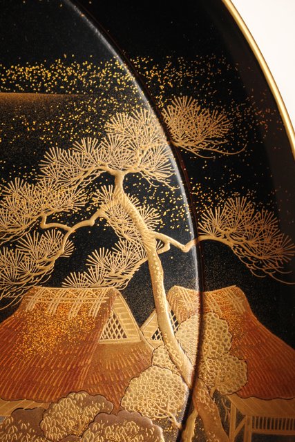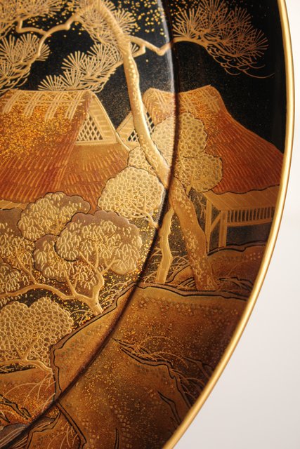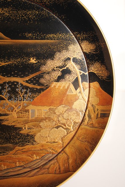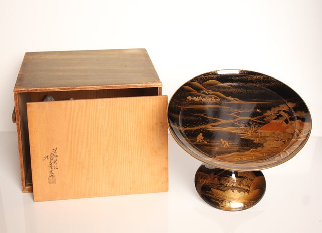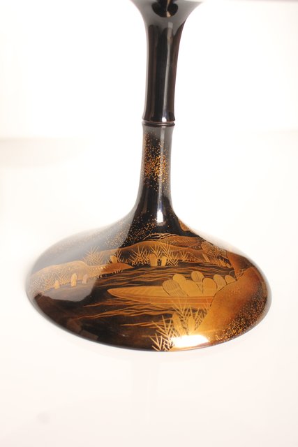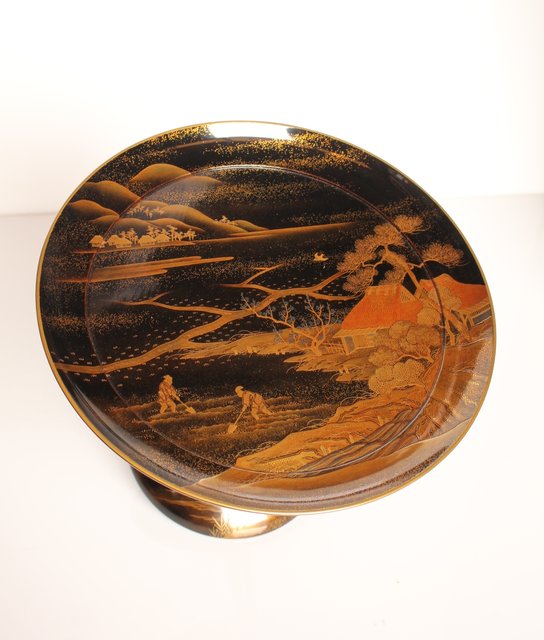 塗師 橘屋友七作 耕作蒔絵高坏 S2839