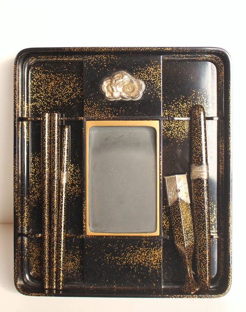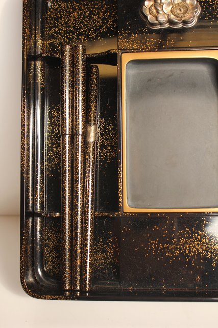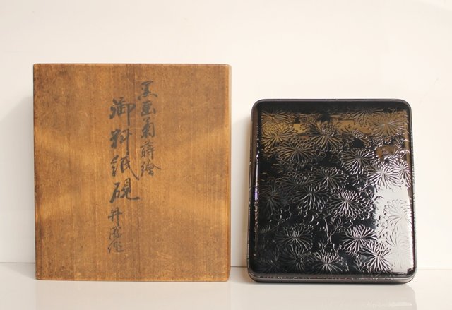 赤塚自得 黒画菊蒔絵御料紙硯 S2932