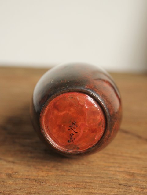柴田是真銘 だまし塗り 倣銅漆芸曽呂利 & 時代斑柴銅 曽呂利/花生 Q048