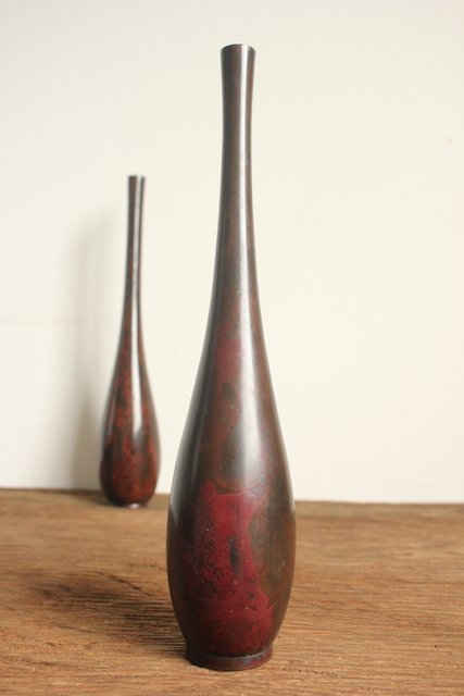 参考作品にしたのか こちらは本物の斑柴銅製の銅器曽呂利 一輪挿し 花生