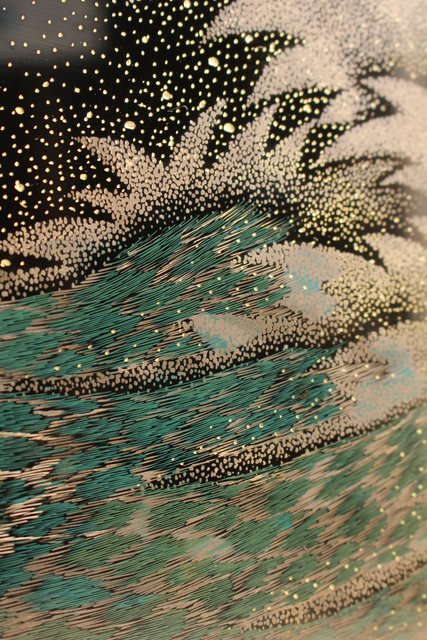 沈金で見事な絵画表現に成功した熟練の技巧です