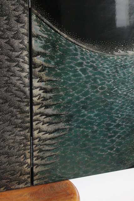 角野岩次 輪島塗沈金涛隅小屏風 Q060