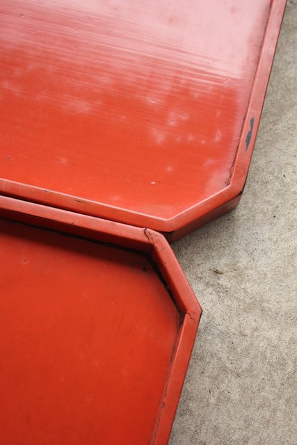 状態はいまいちですが 時代の雰囲気あふれる根来風の膳になります