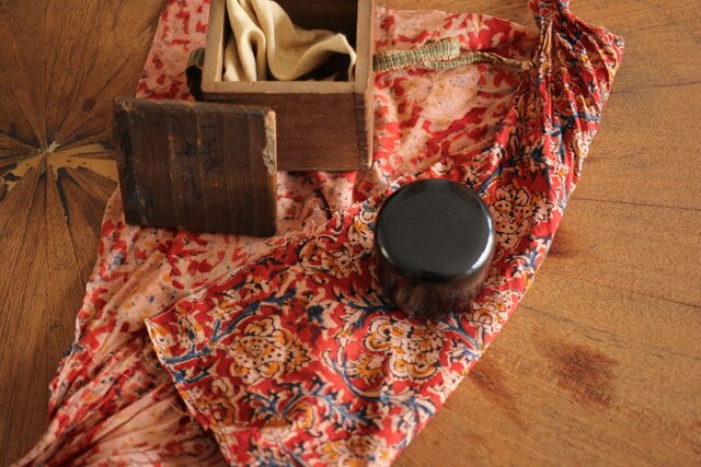 真贋は不明ですが 雰囲気ある時代の一閑張棗になります
