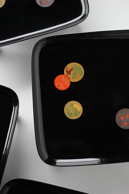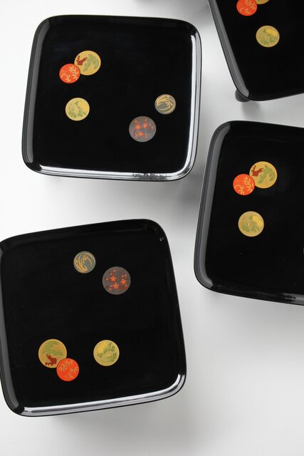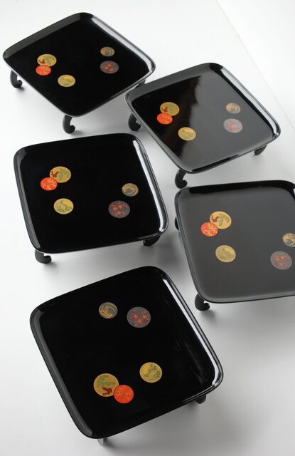 輪島塗 佐藤貞一 五清図蒔絵膳 五客 Q352