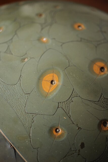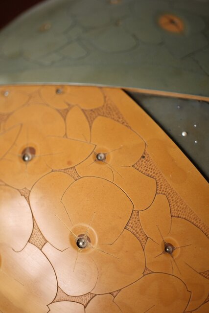 水滴 花を表現するうえで鉛の粒をところどころにはめ込んでいます