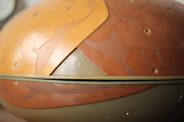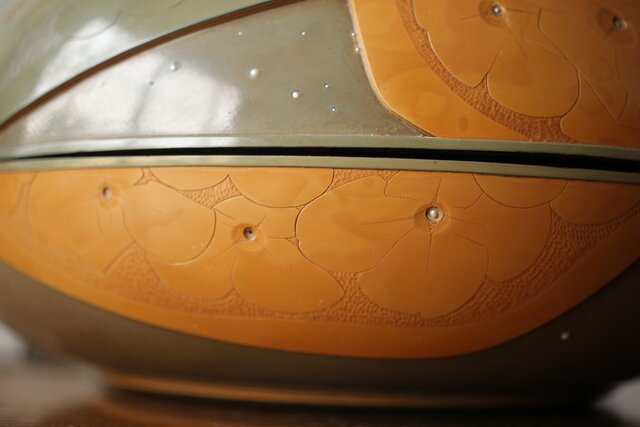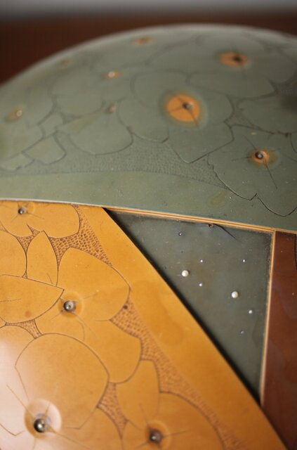3色の漆を何層にも重ね