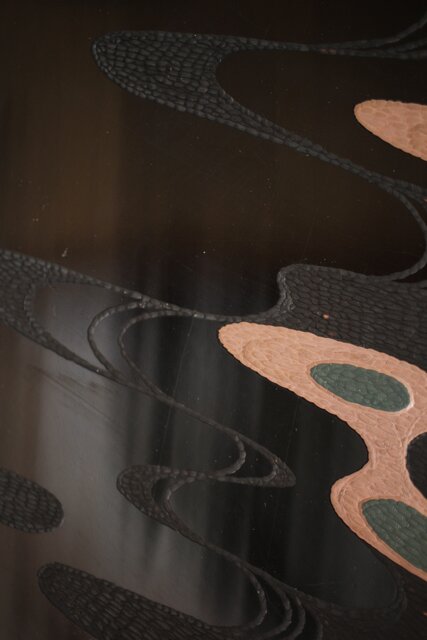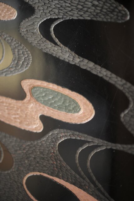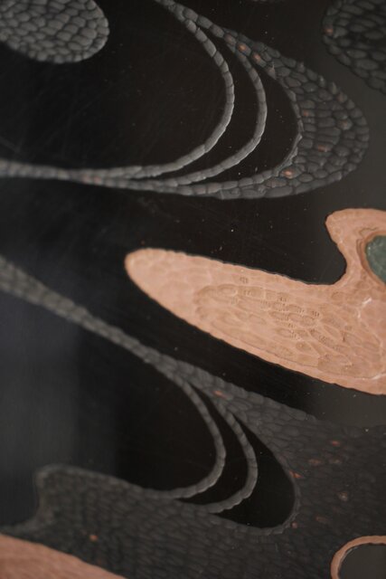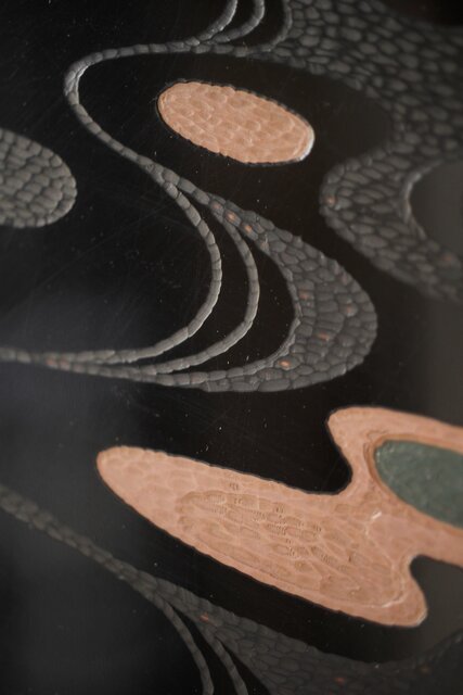 流水模様のようなデザインを彫漆により表現