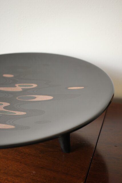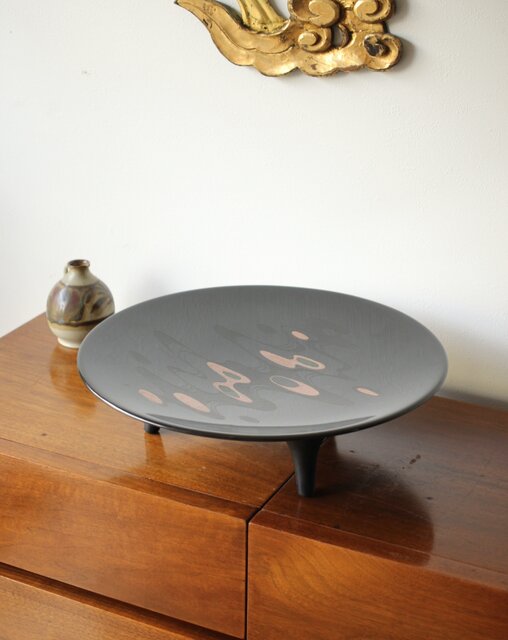 音丸香 彫漆三足脚付き盆 Q362