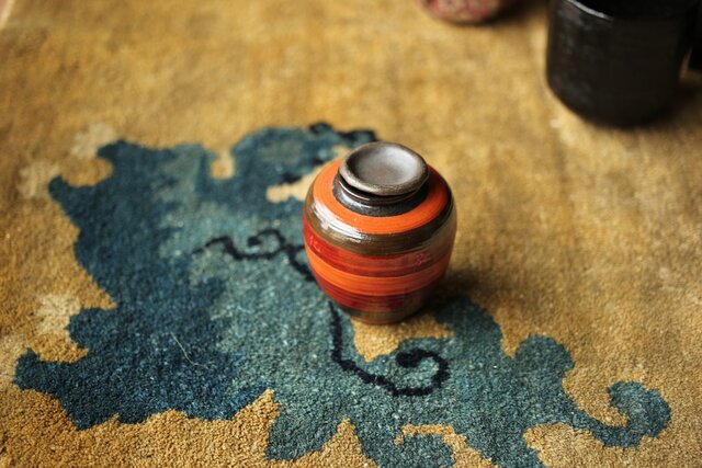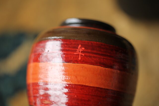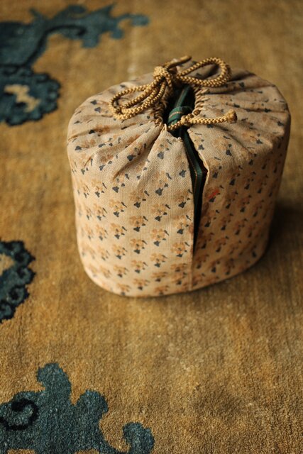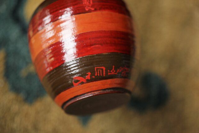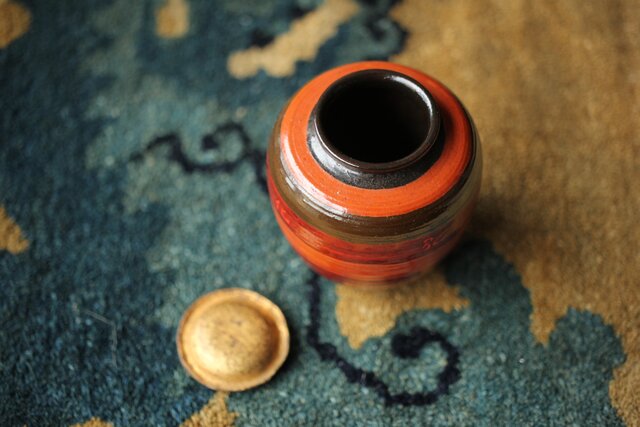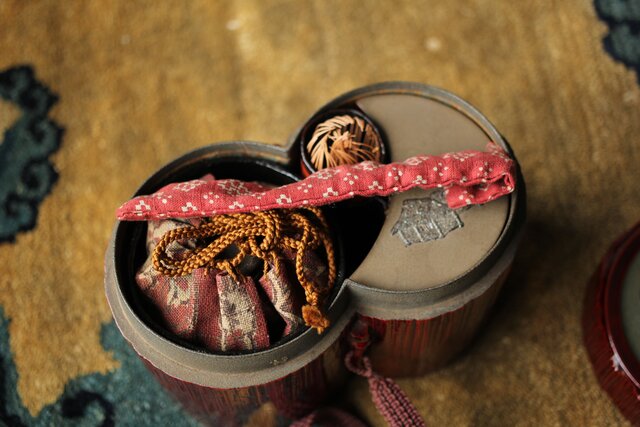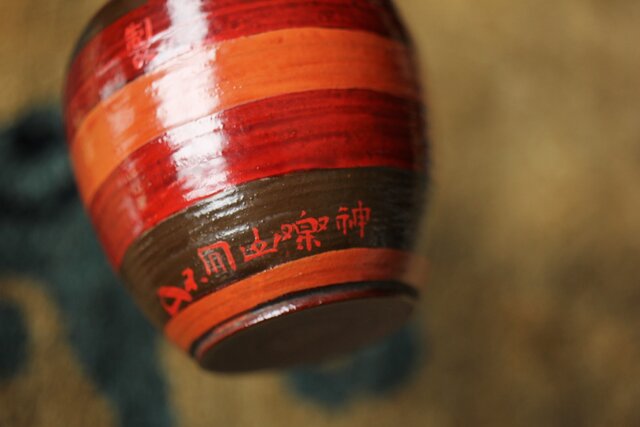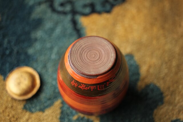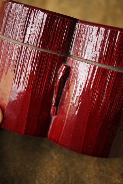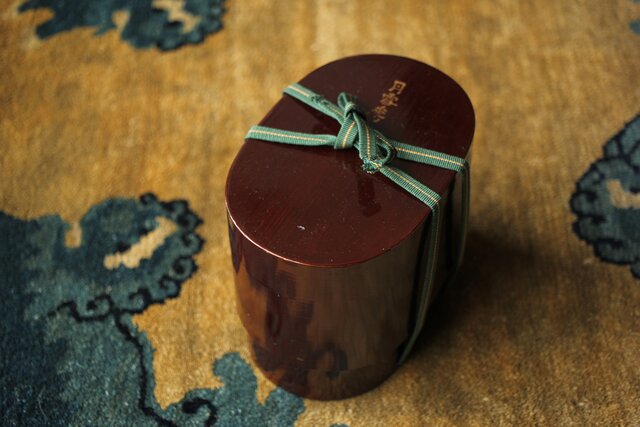 茶入:独楽写で張貫 一閑張りの仕上げの様です 側面に「弘化年製 神楽丘前?不入」