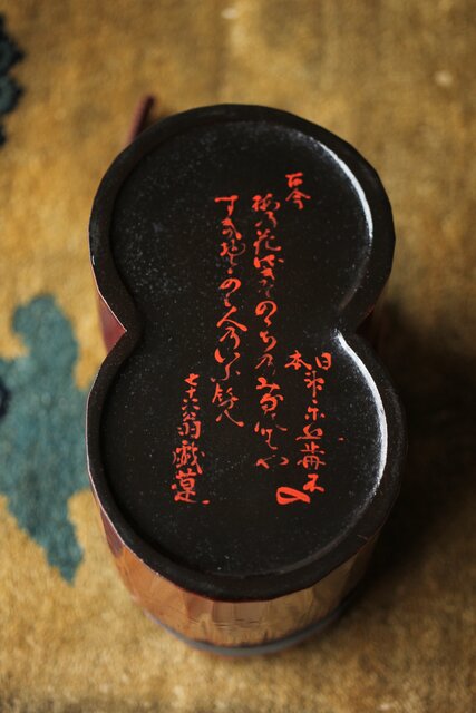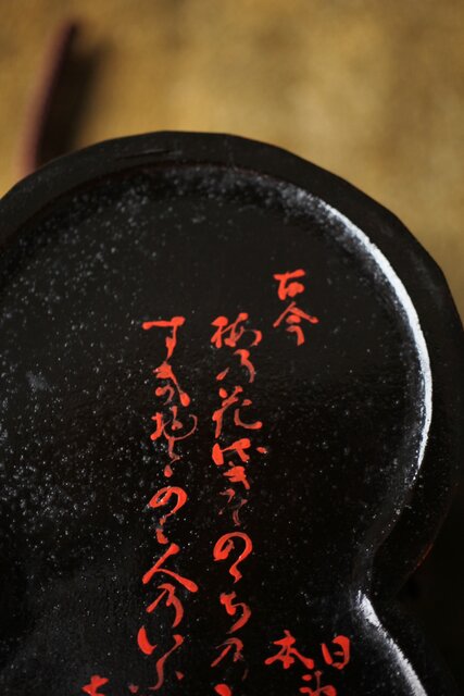 底には漆で和歌が掛かれています