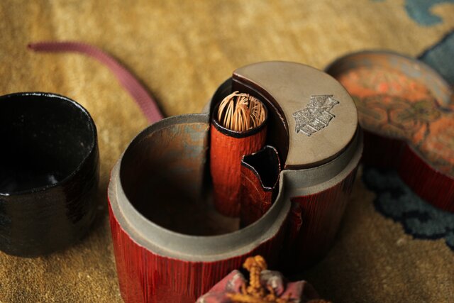 茶巾筒・茶筅筒:ともに張貫 底面に花押