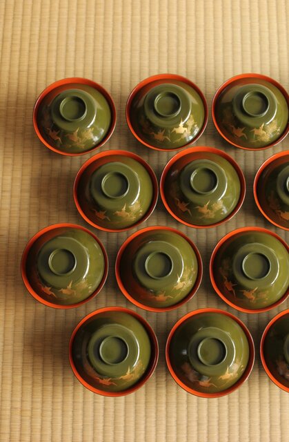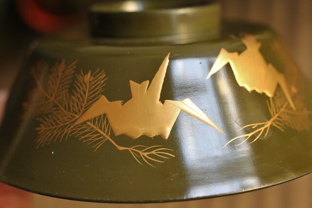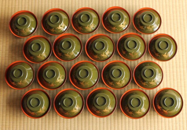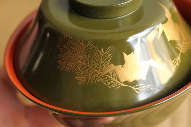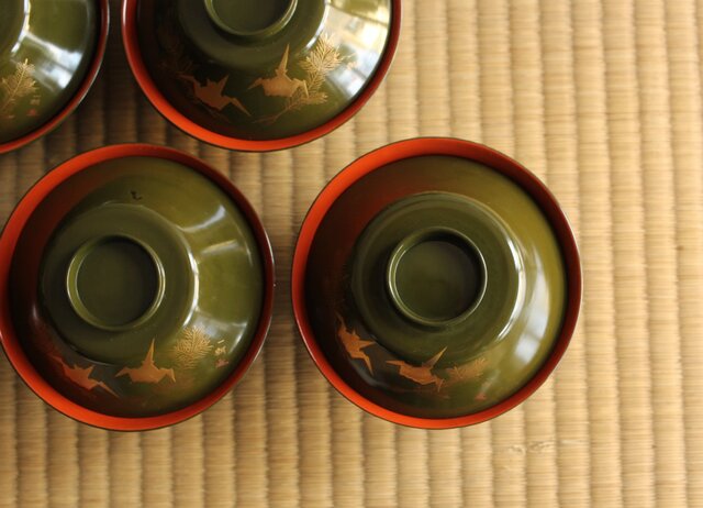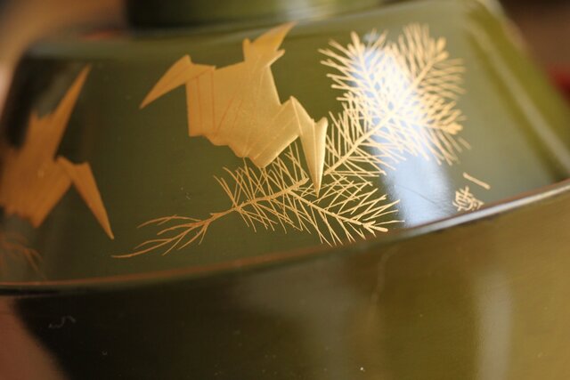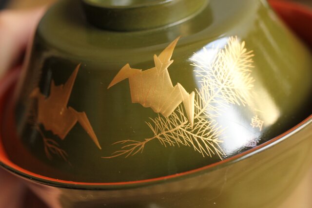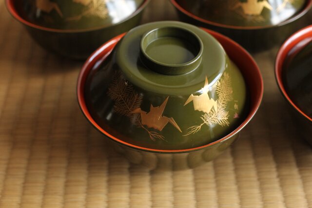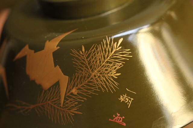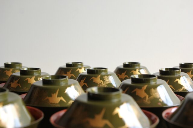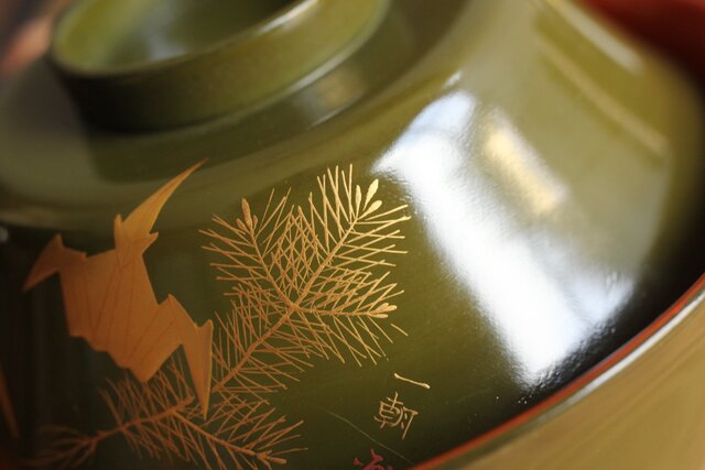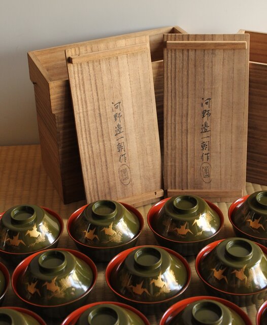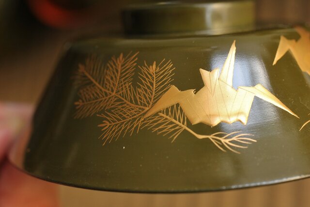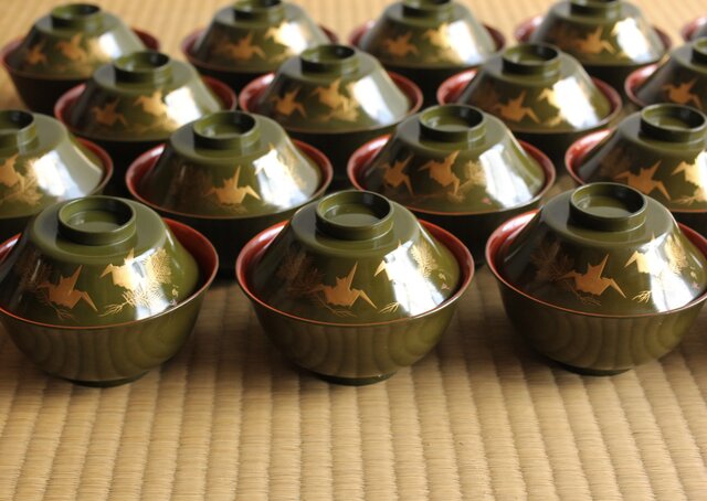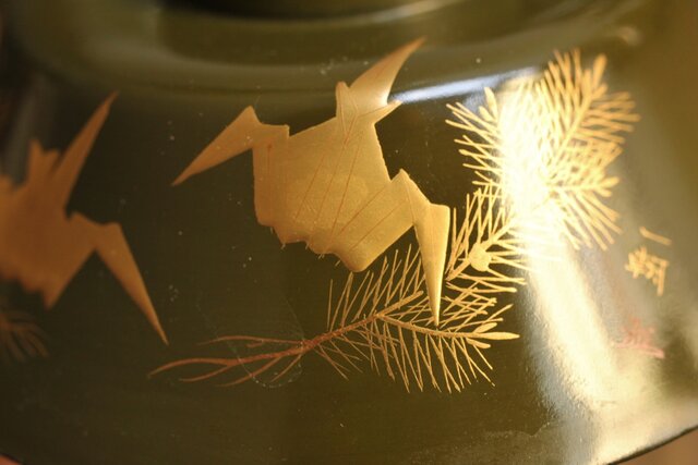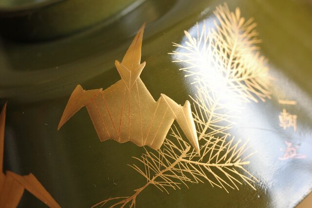 一朝銘 蒔絵椀20客 折鶴に松葉 Q367