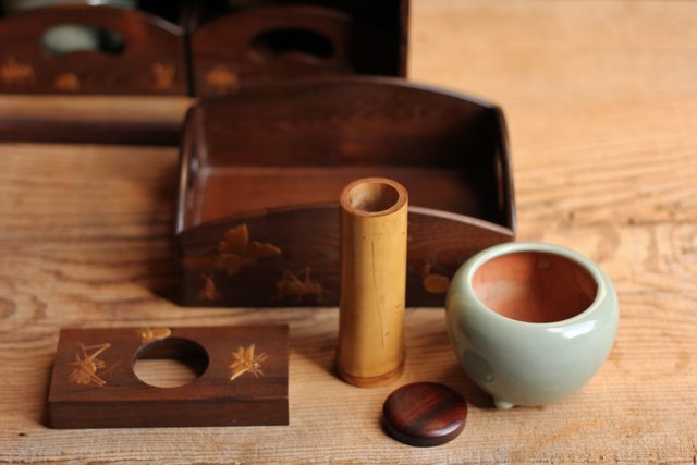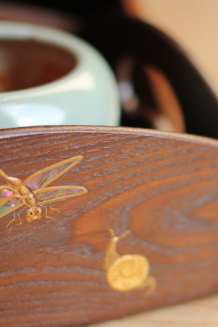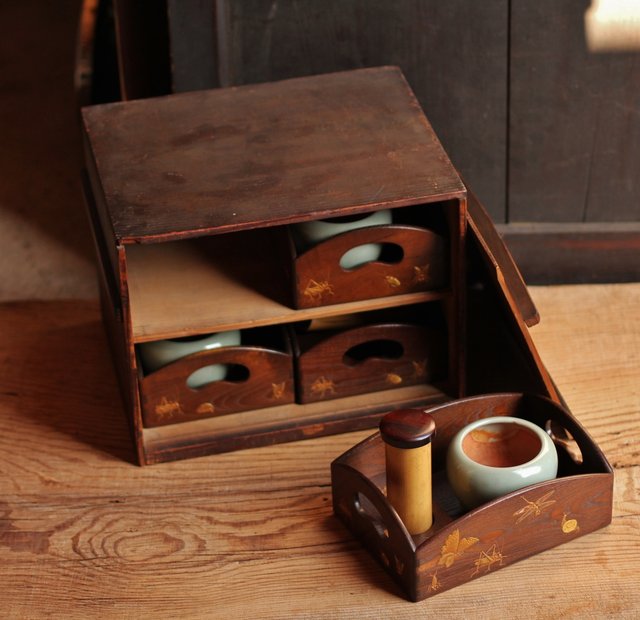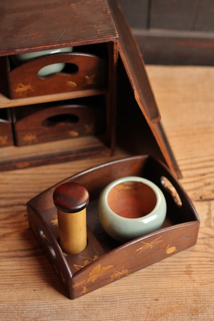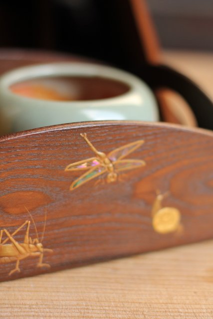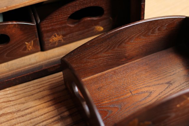 良質な桑材を使用したダークな素地の上に金蒔絵がよく映えます