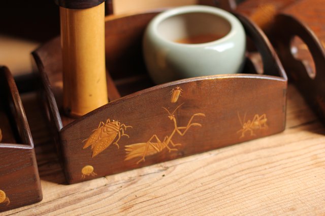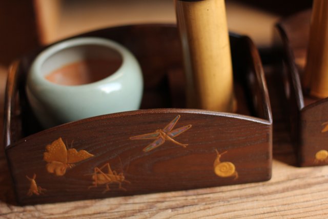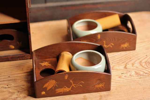 可愛らしい何種もの虫たちで彩られた煙草盆