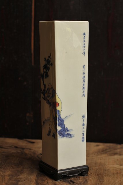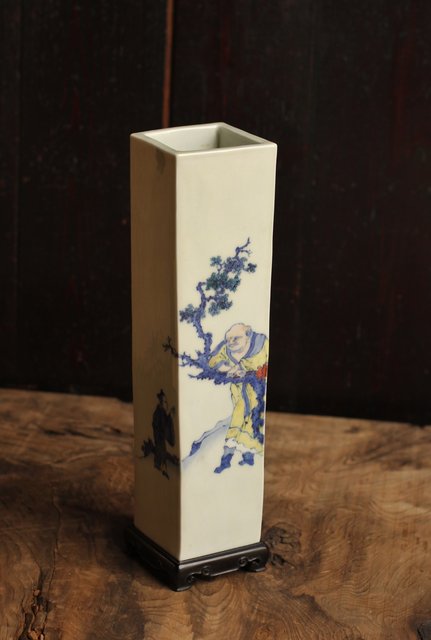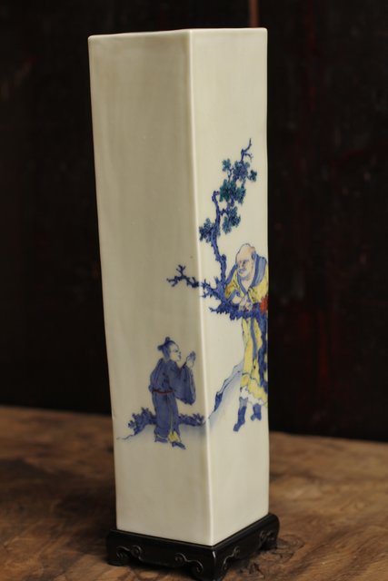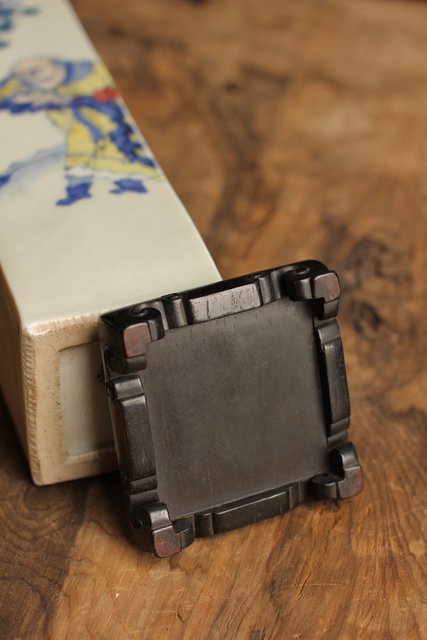 初代三浦竹泉四方花瓶唐木台 S1743