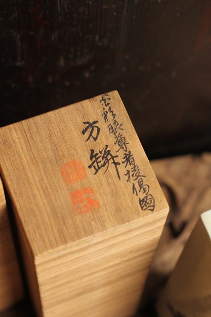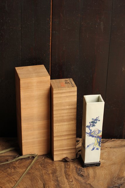 2重箱に大切に保管されていた竹泉作四方花瓶