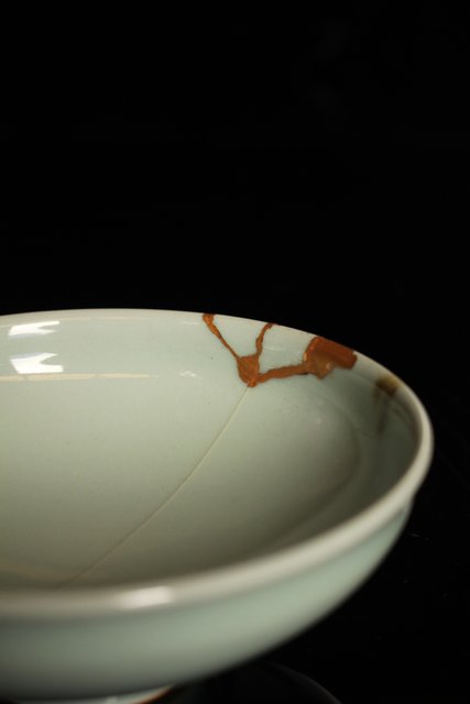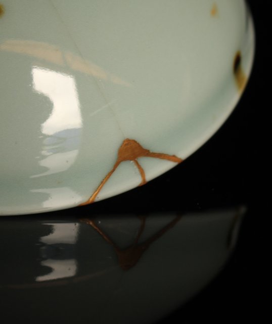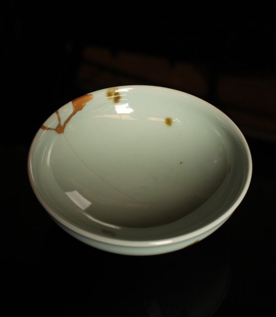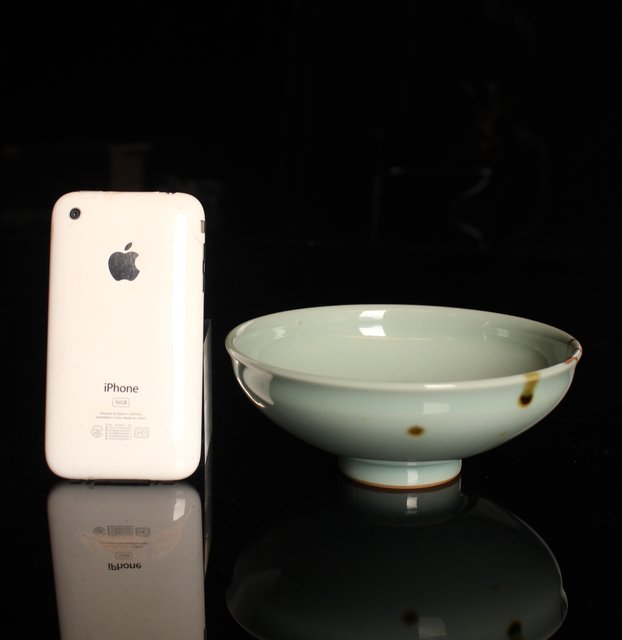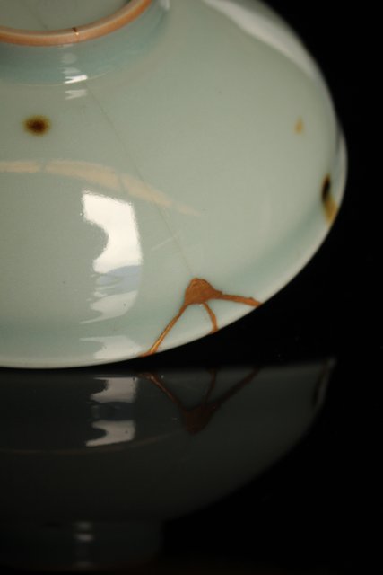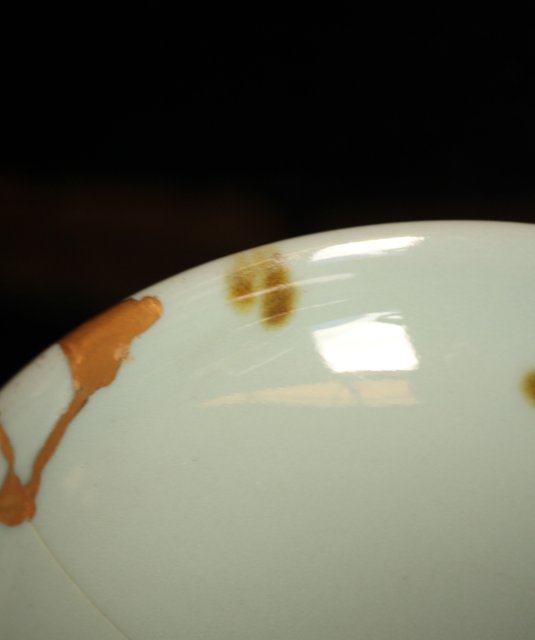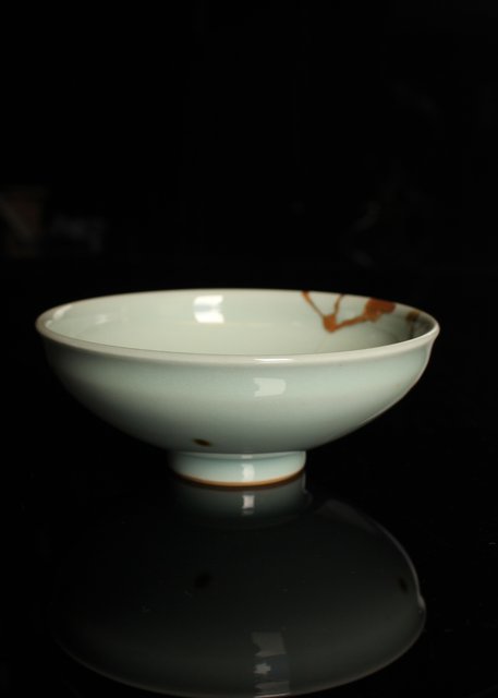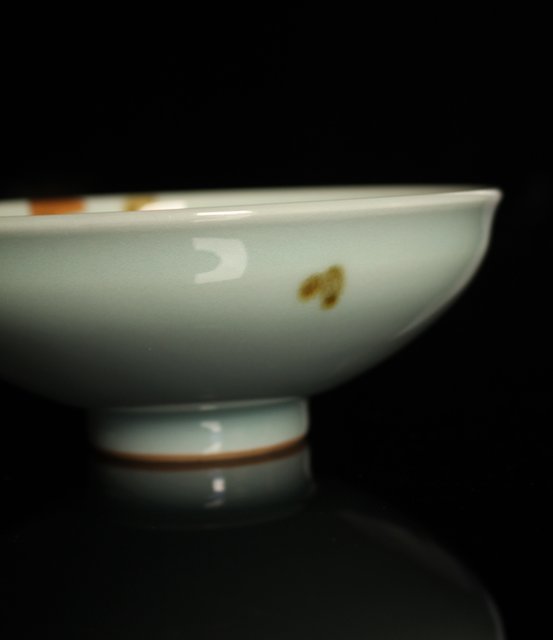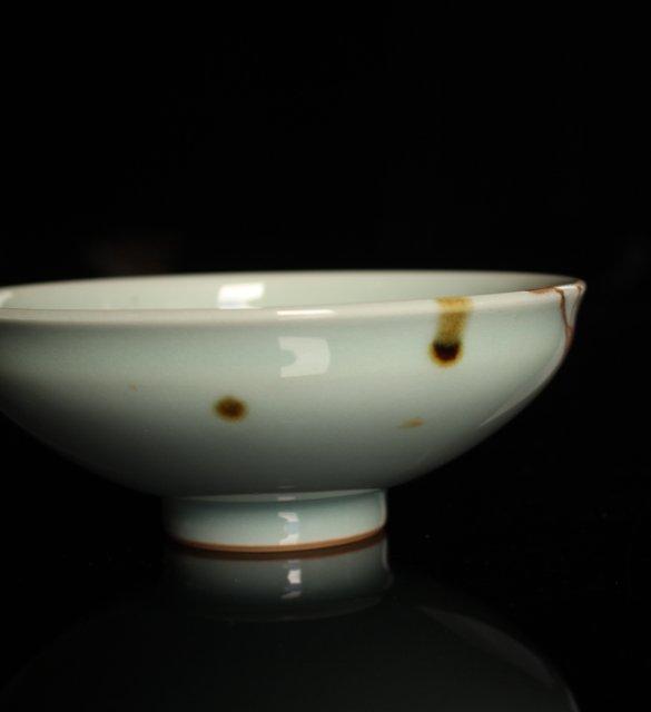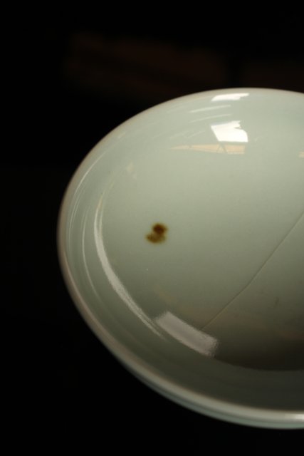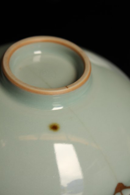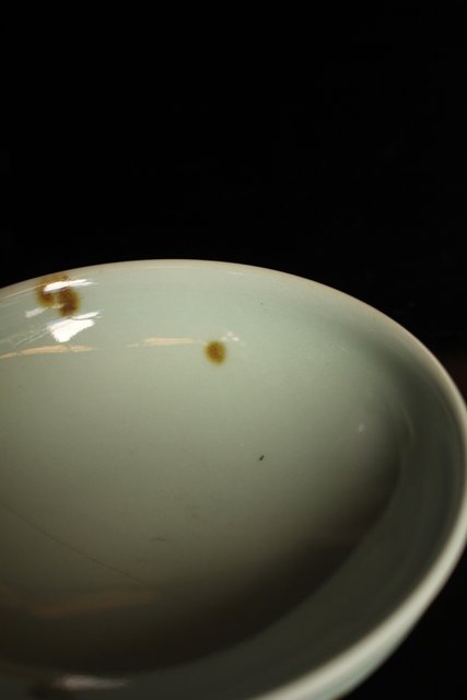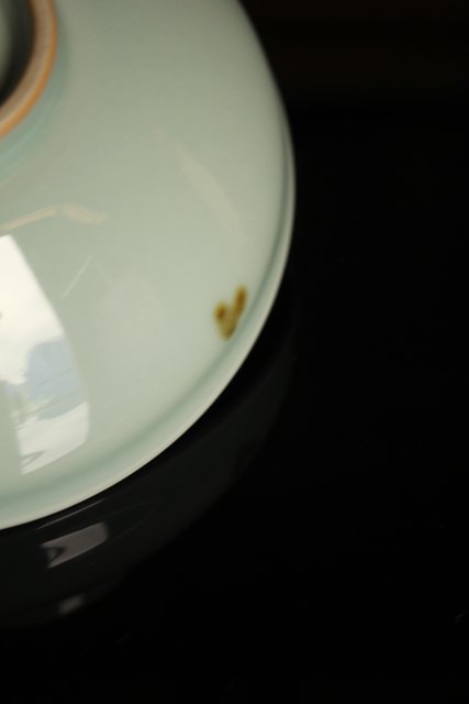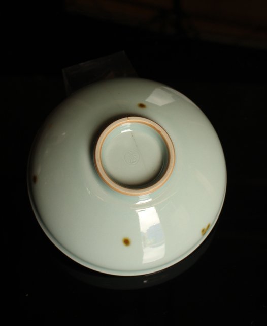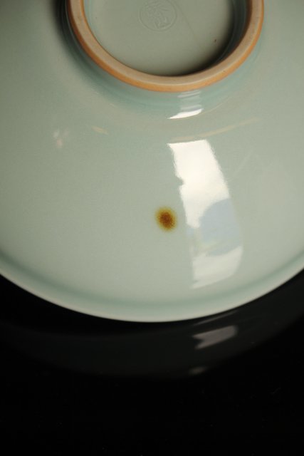ちらほらと飛散する釉薬の景色と落ち着いてきた青磁の色味