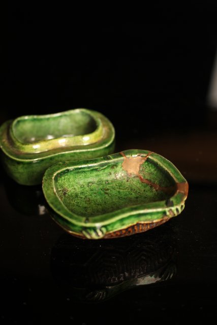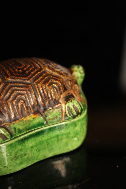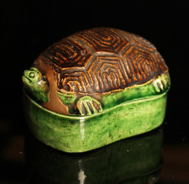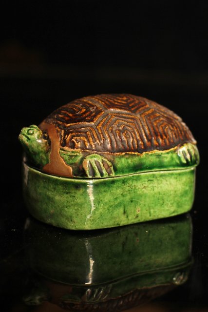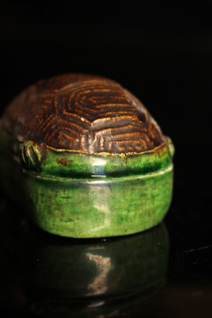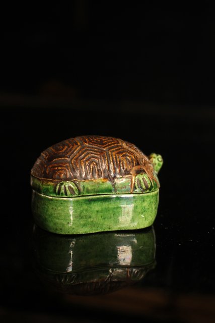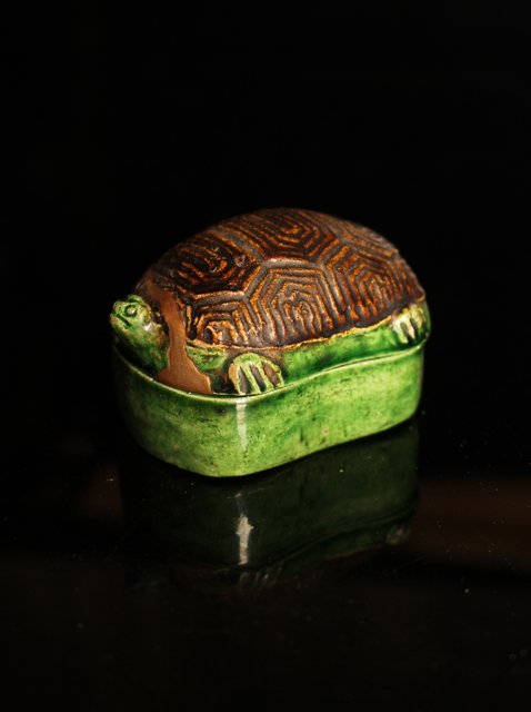 緑釉の深い色味が美しい交趾写しの亀型香合