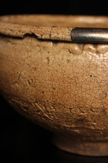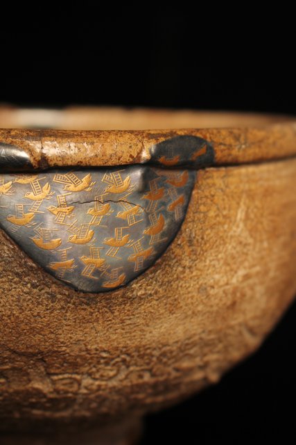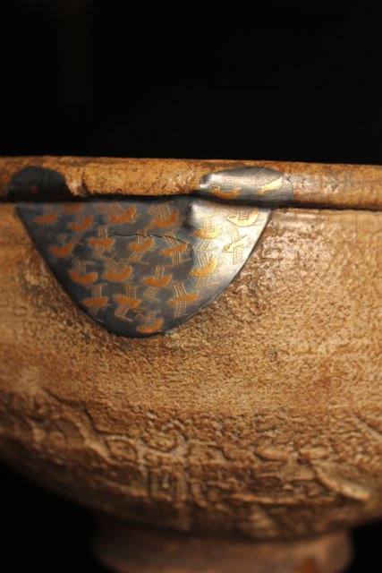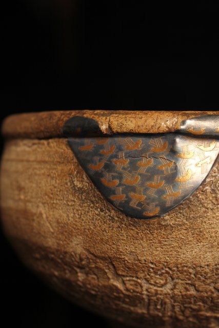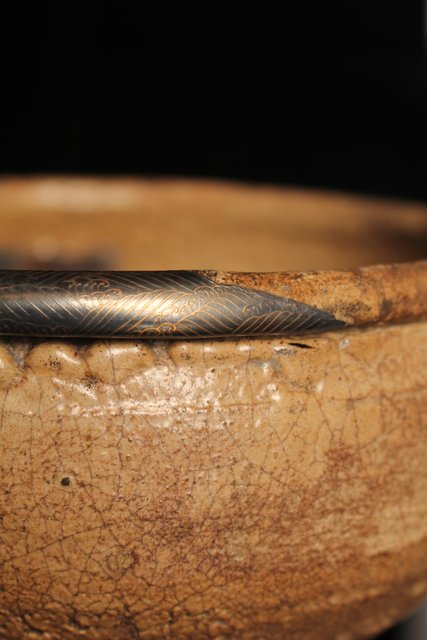 古唐津の方口が金銀継で新しい鉢へと生まれ変わりました