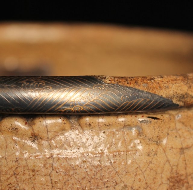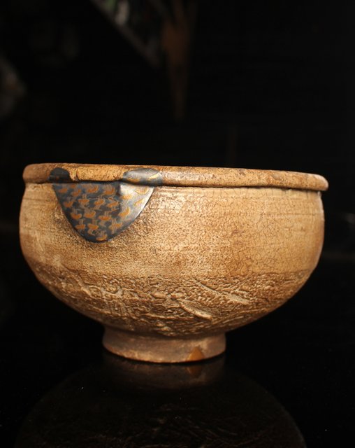波千鳥蒔絵継古唐津片口/茶碗 K237