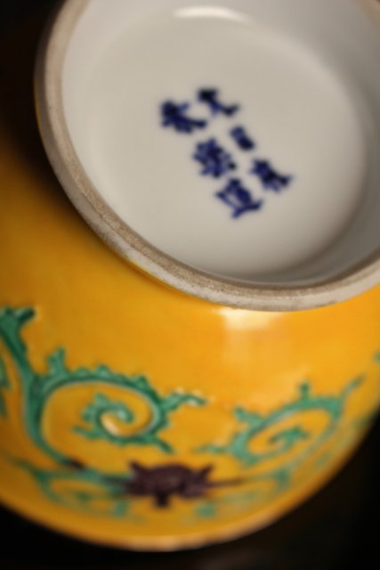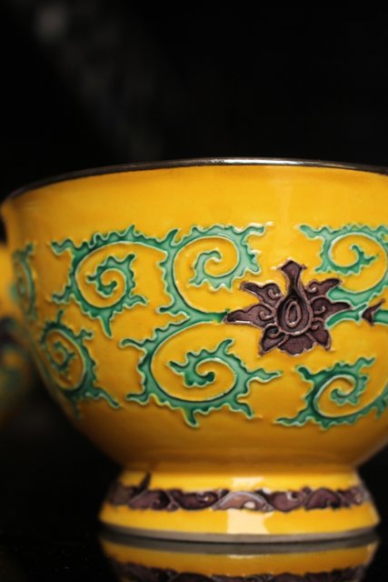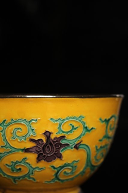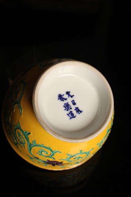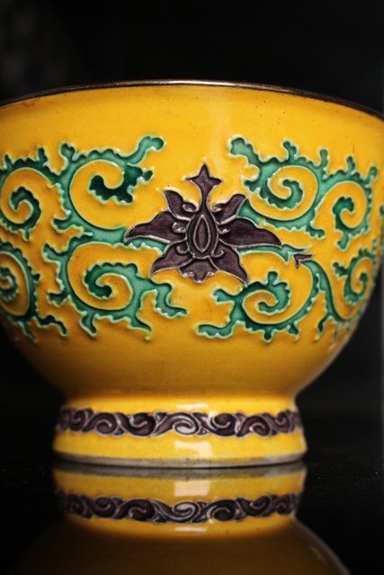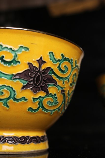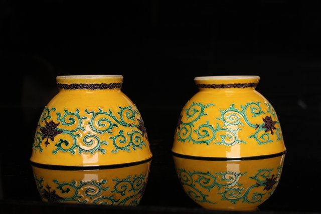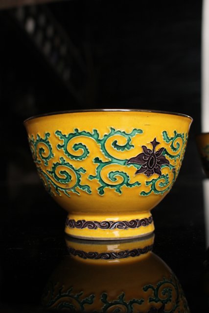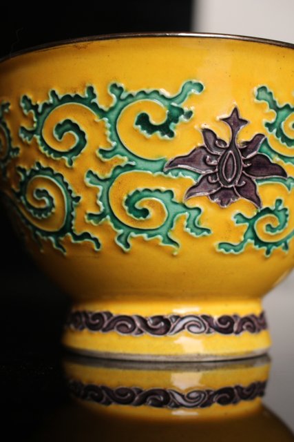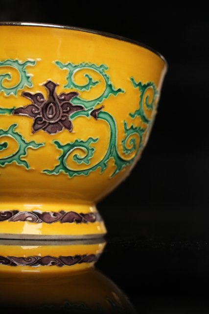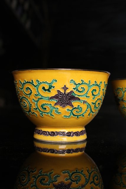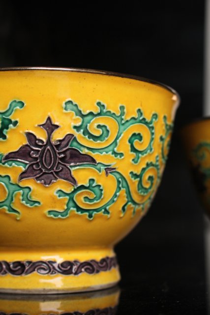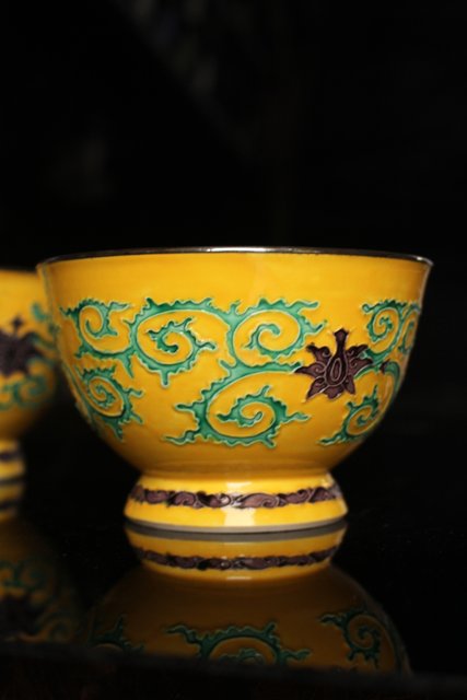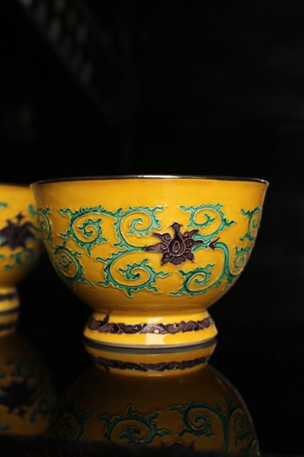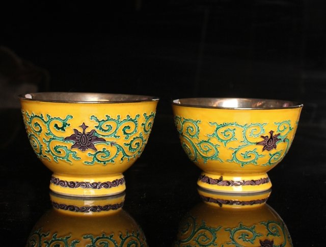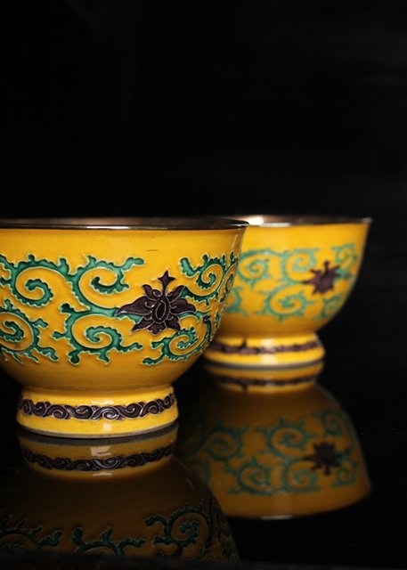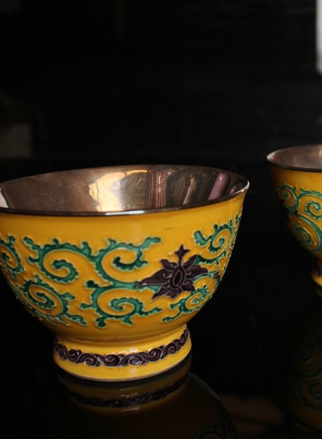 永楽造 黄交趾内銀張盃洗一対 S2698