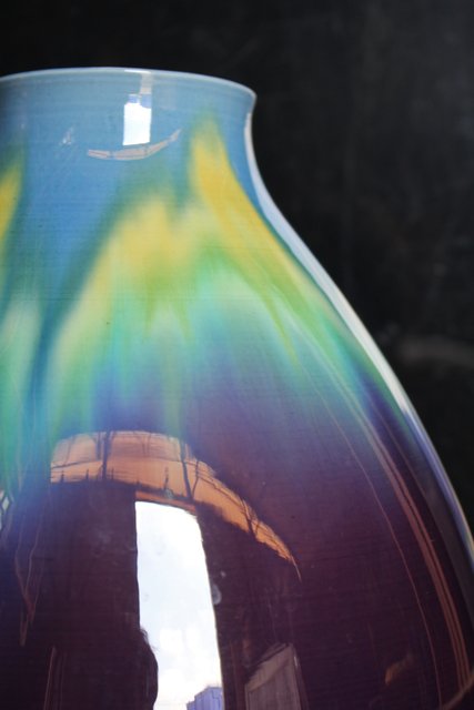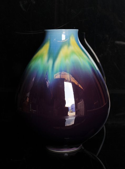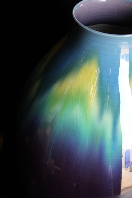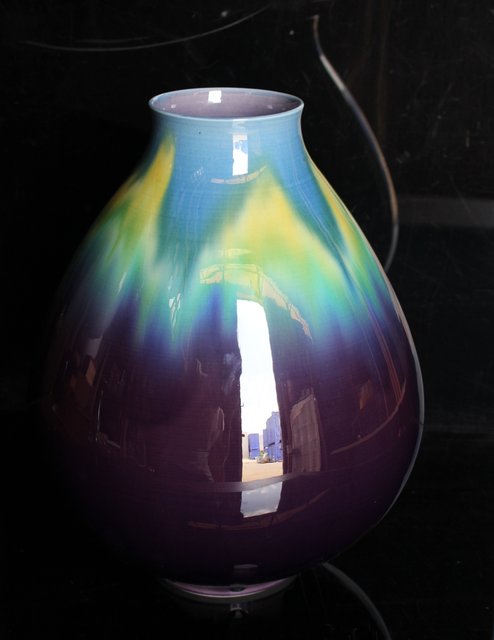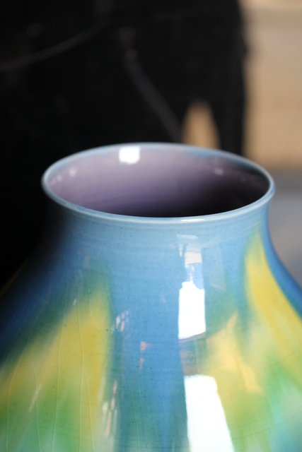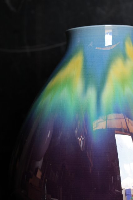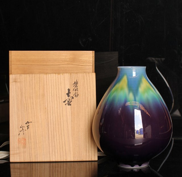 人間国宝 3代徳田八十吉/正彦 碧明釉壺 S2820
