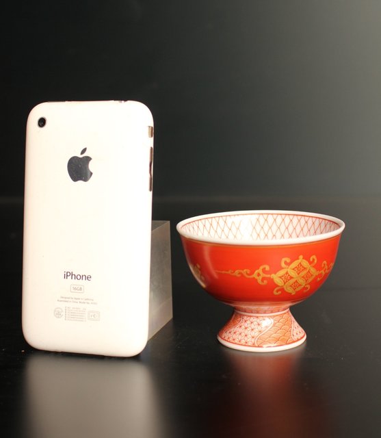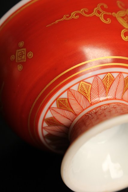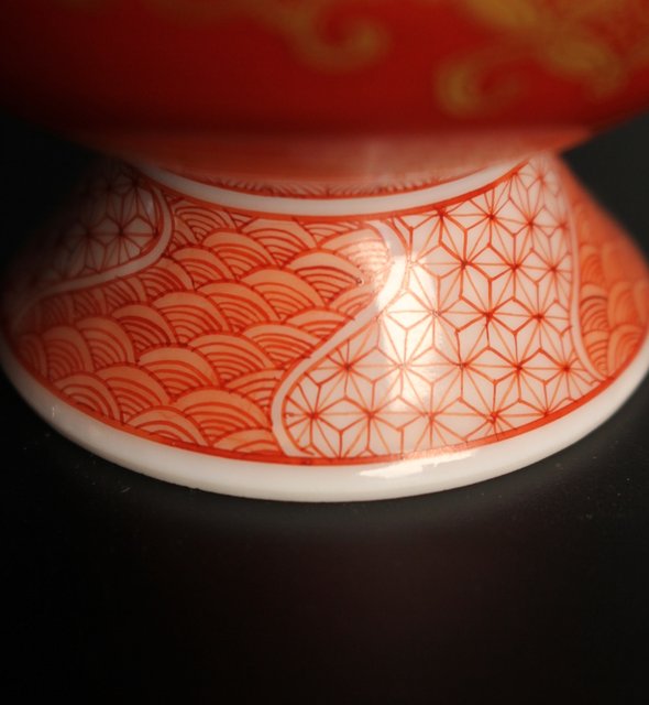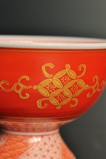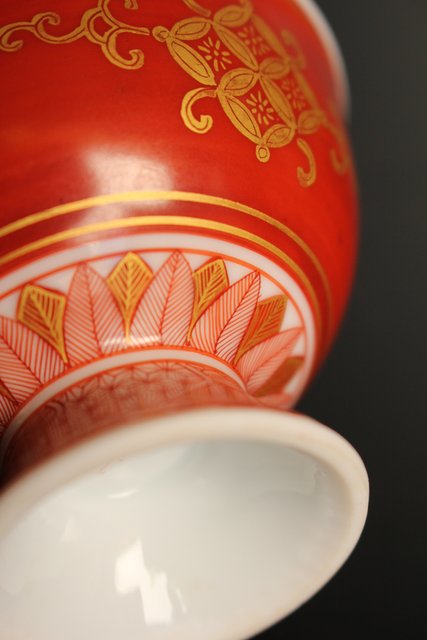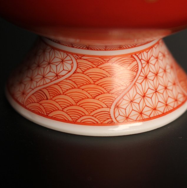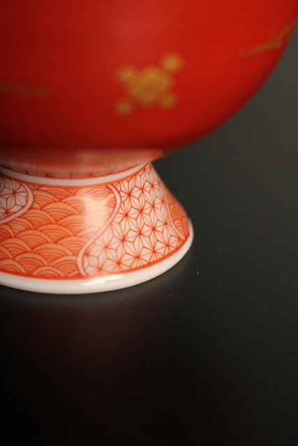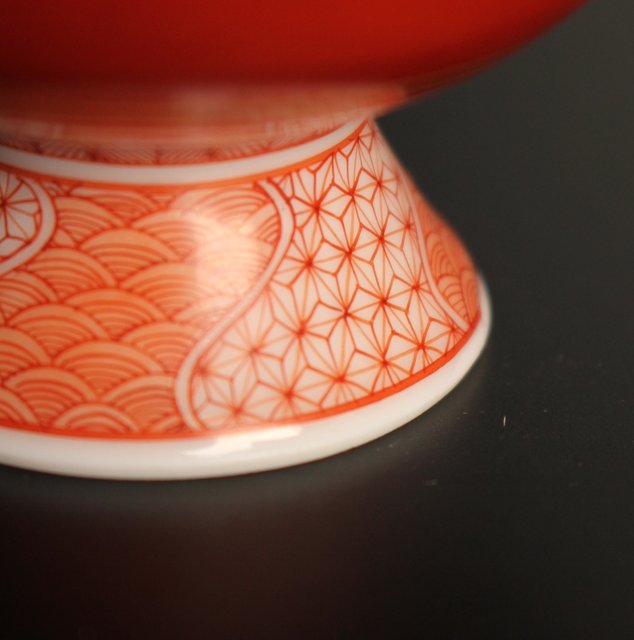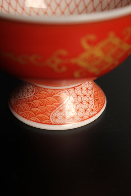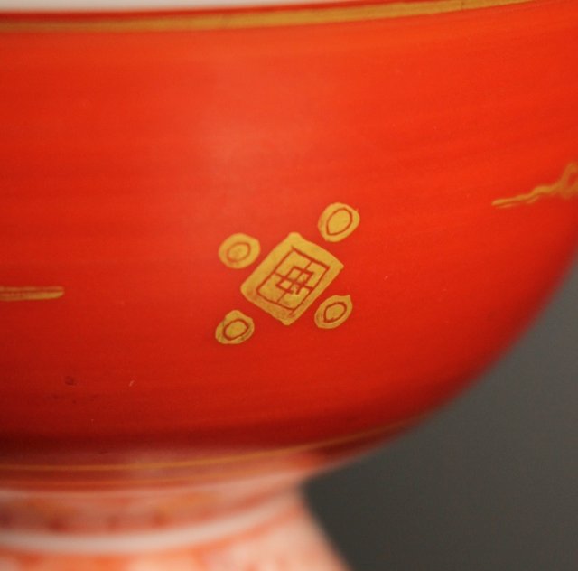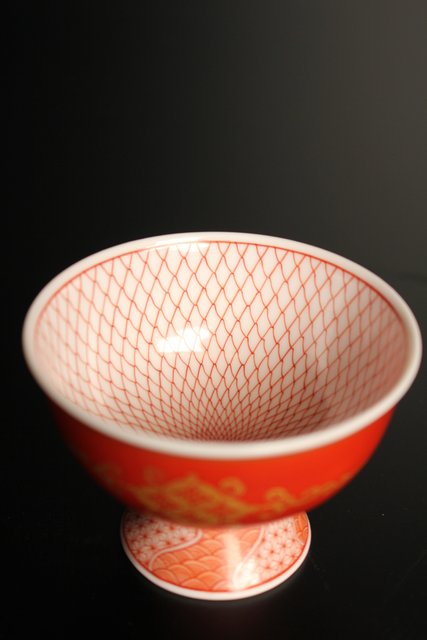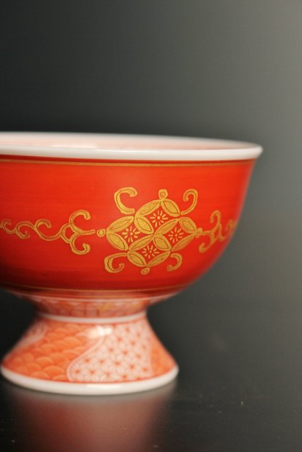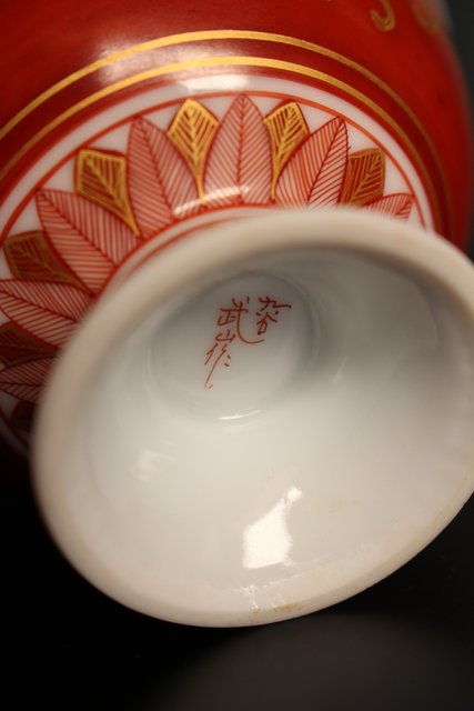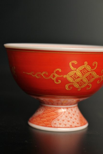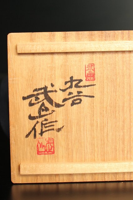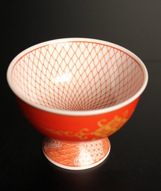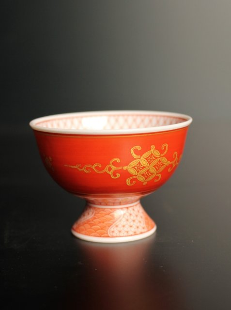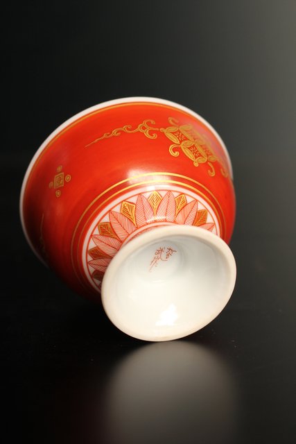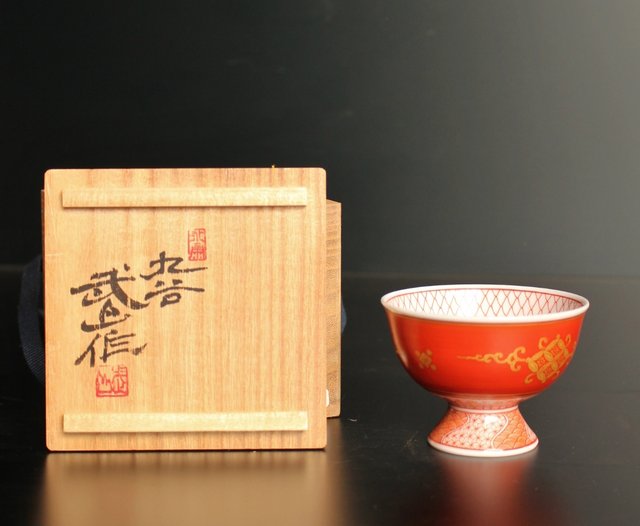 福島武山 赤網手杯 共箱 共布 S2866