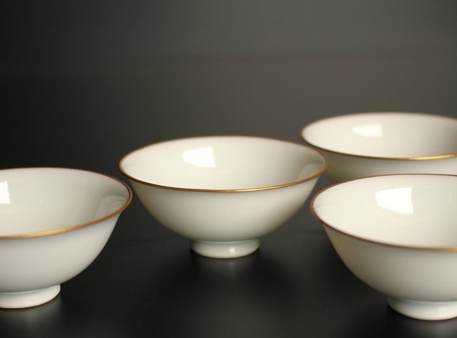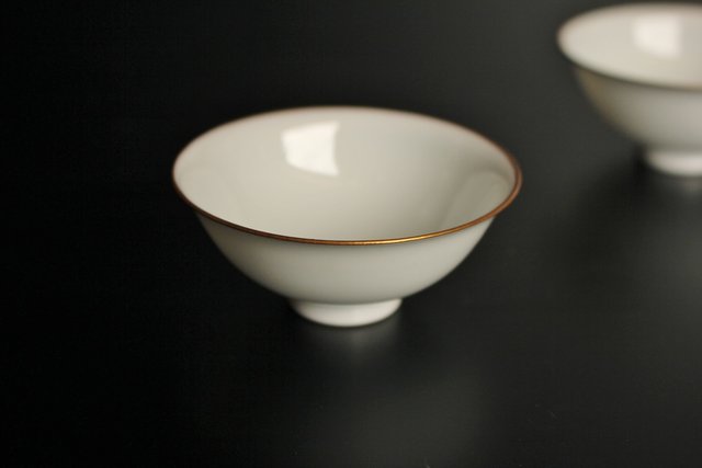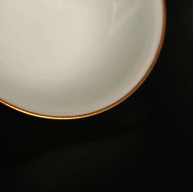 透き通るような真っ白な素地に金縁